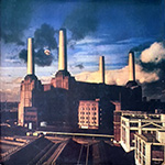 Front Cover: Battersea Power Station with a pig above it. Laminated.
