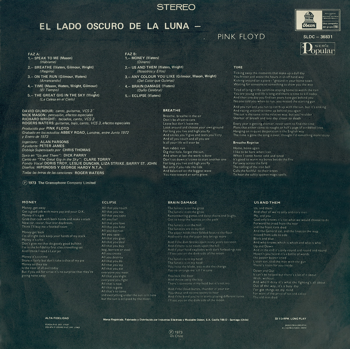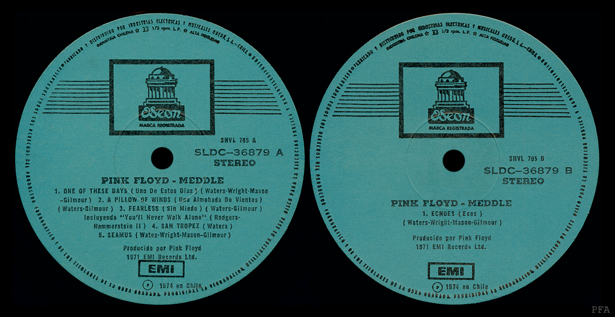 Release Information: Double album reissue of Piper at the Gates of Dawn and A Saucerful of Secrets. Made and distributed in Chile in 1977 by Industrias Electricas Y Musicales Odeon S.A.