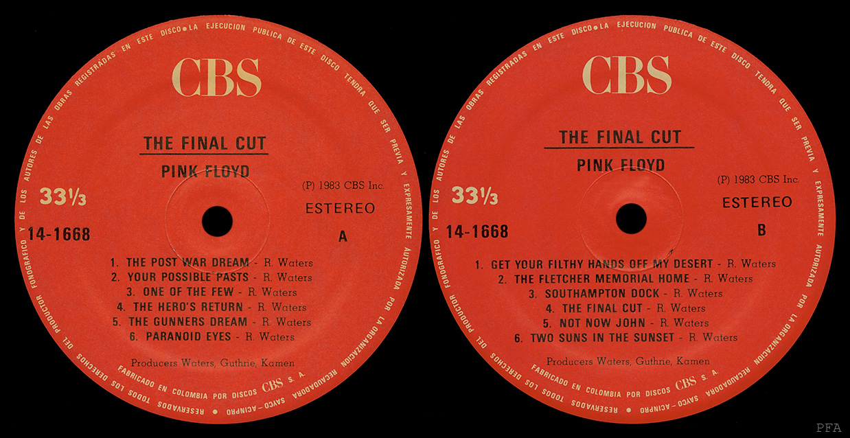 Spine: 14-1668 - THE FINAL CUT - PINK FLOYD