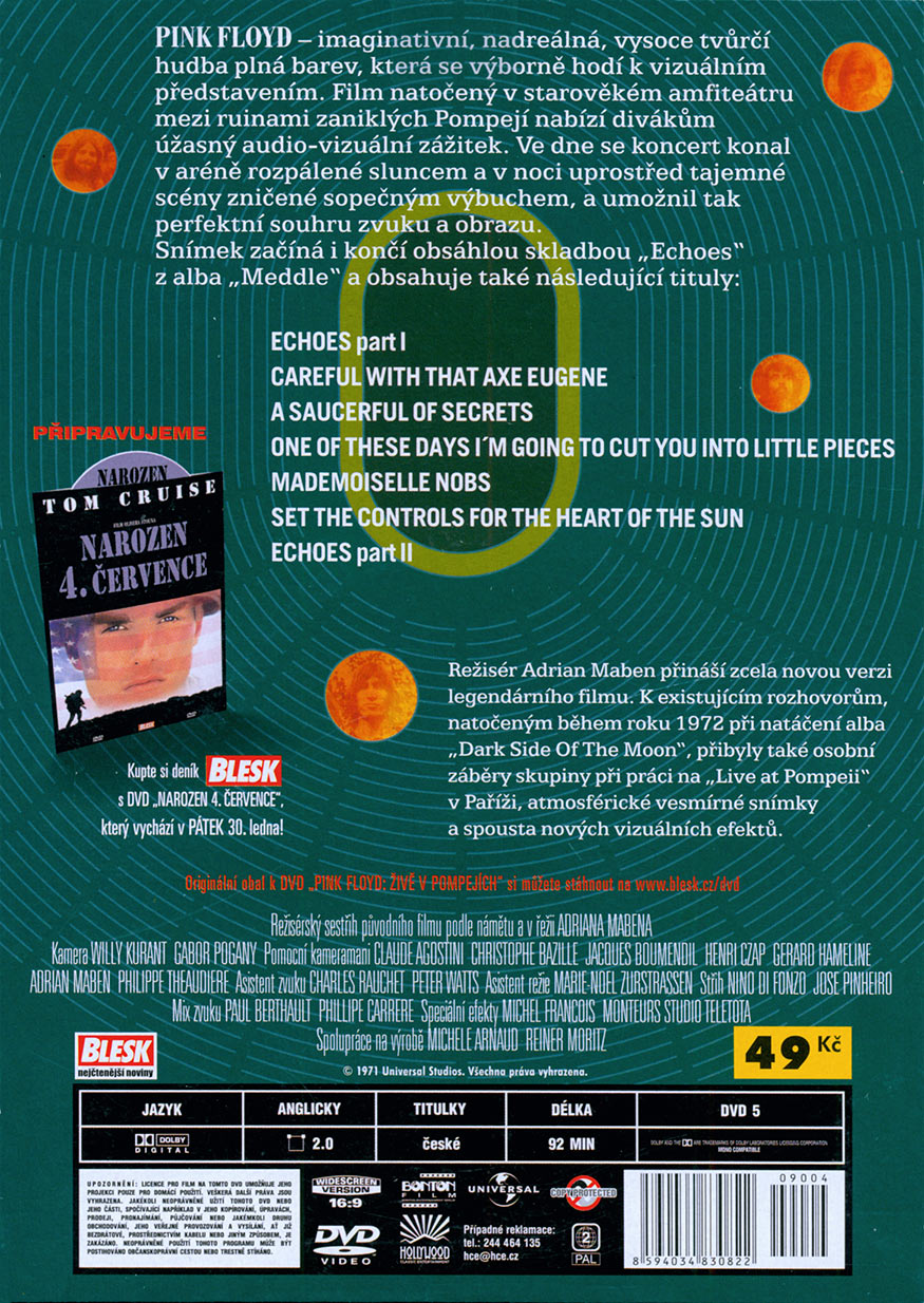 Release Information: Czech release of the movie, Pink Floyd - Live at Pompeii. Issued in a Czech newspaper.