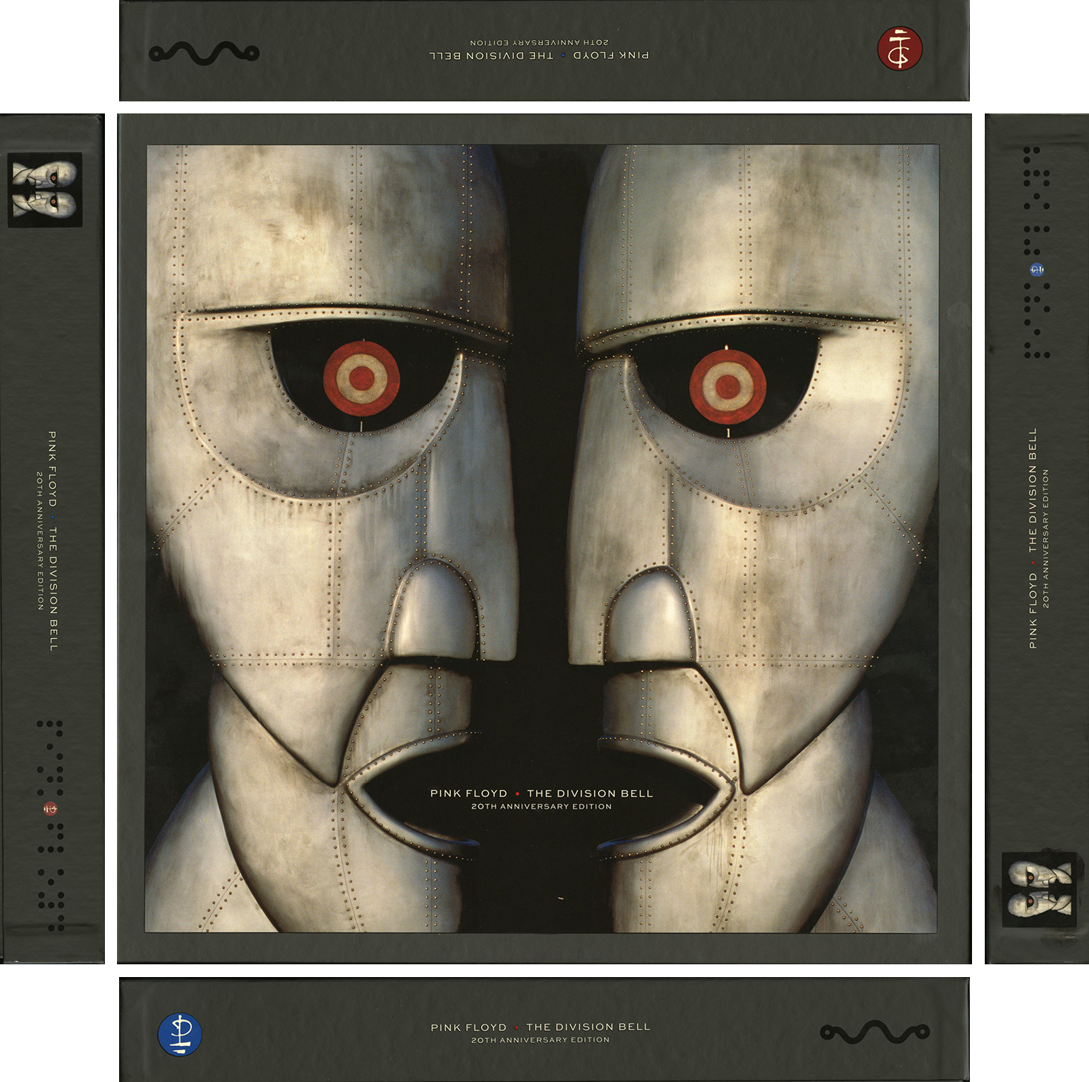 1) Rectangular white cover sticker that says "PINK FLOYD THE ENDLESS RIVER Deluxe 2-Disc Set CD + Blu-ray includes Album in high resolution 5.1 and Stereo, Plus non-album material (39 mins approx), 6 video tracks + 3 audio tracks, 24-page deluxe hardback booklet, 3 collectors' postcards, Stereo PCM, 5.1 DTS Master Audio and 5.1 PCM, All audio in high resolution 96kHz/24 bit, Archive video material from standard definition source. 825646213337"