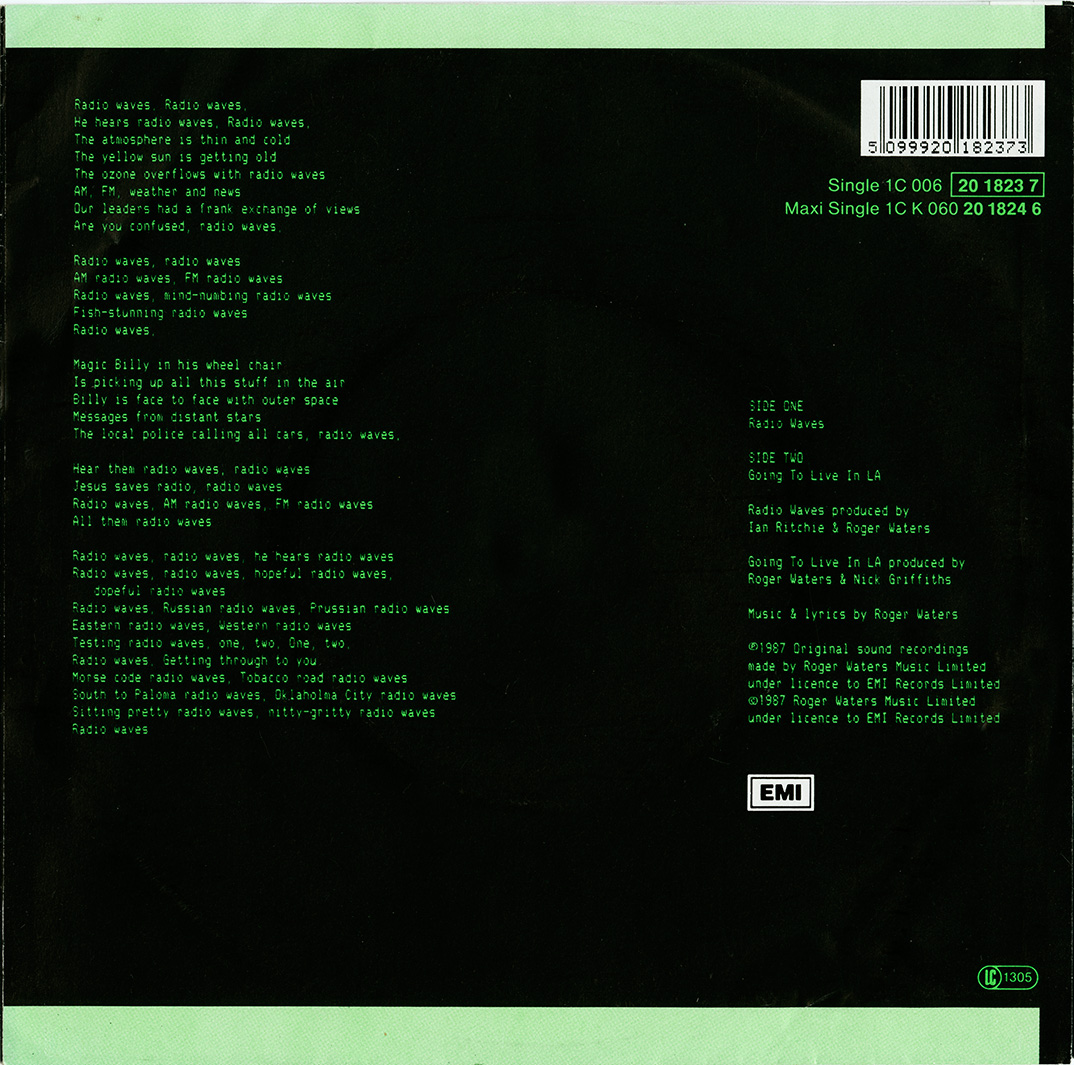 Front Cover: Black with big green letters that read: Roger Waters Radio Waves.