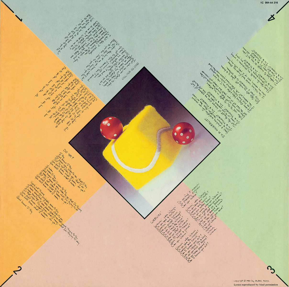 Inner Sleeve: [front] [back] The front has photos of the recording sessions and the lyrics. The back has dice and lyrics.