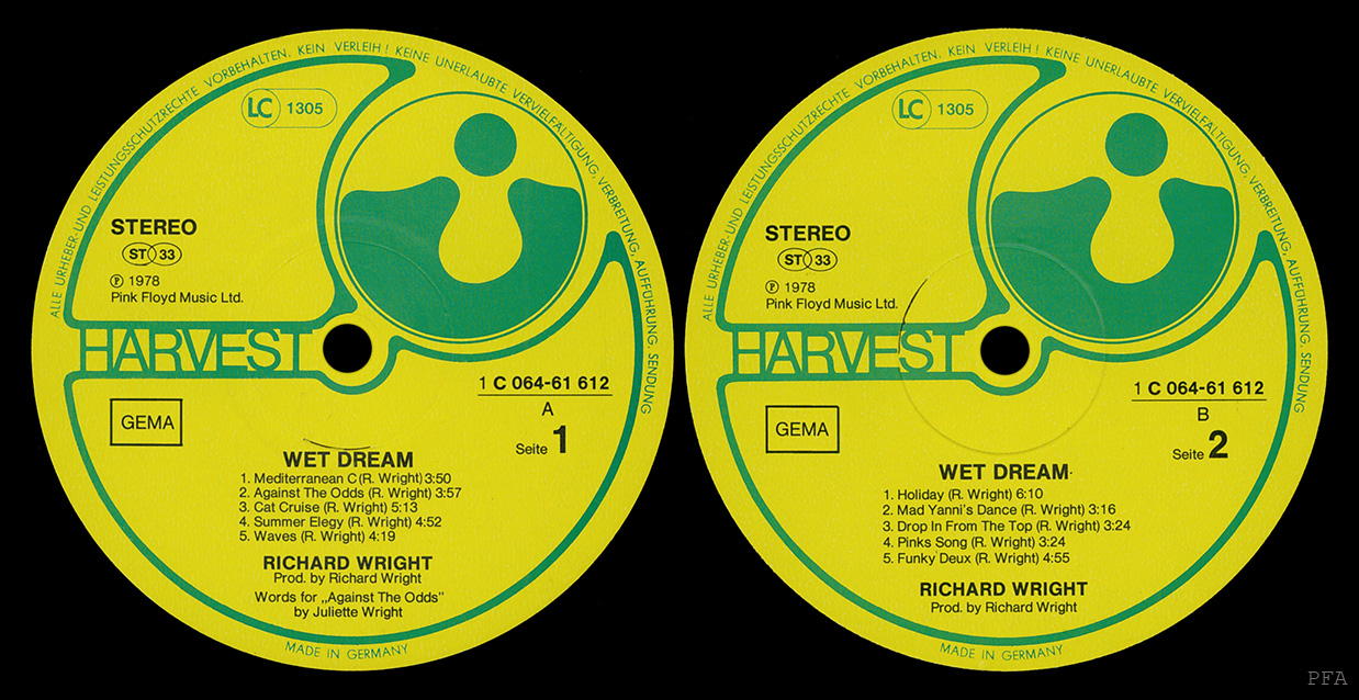 Cover Sticker: Some copies have a round orange sticker on the cover that says "PINK FLOYD SOLO ALBUM Rick Wright.".