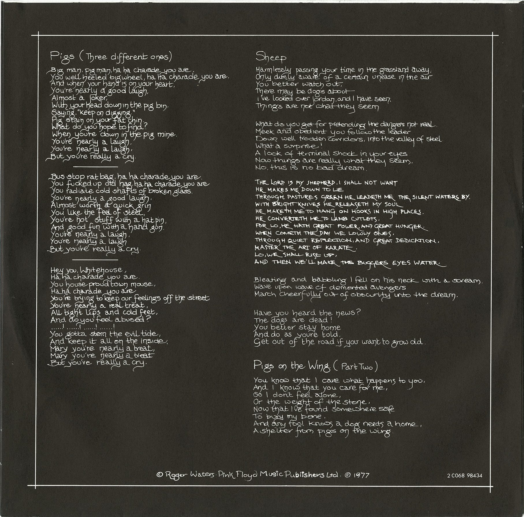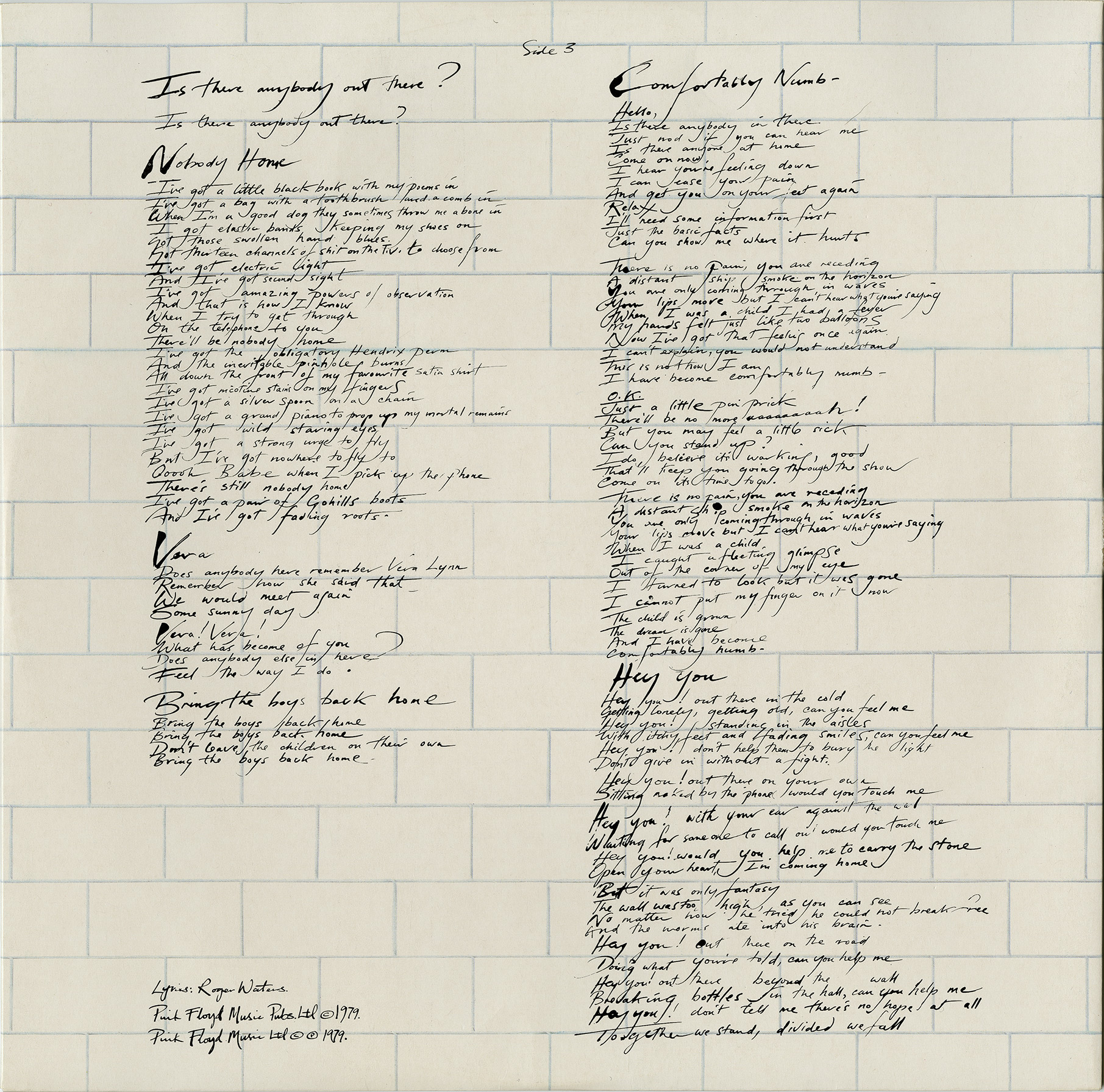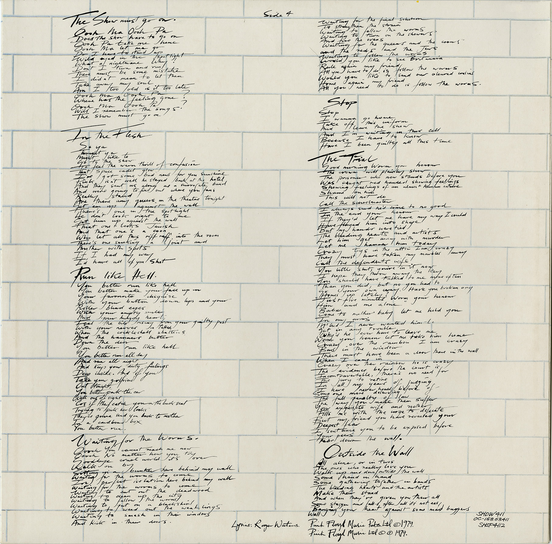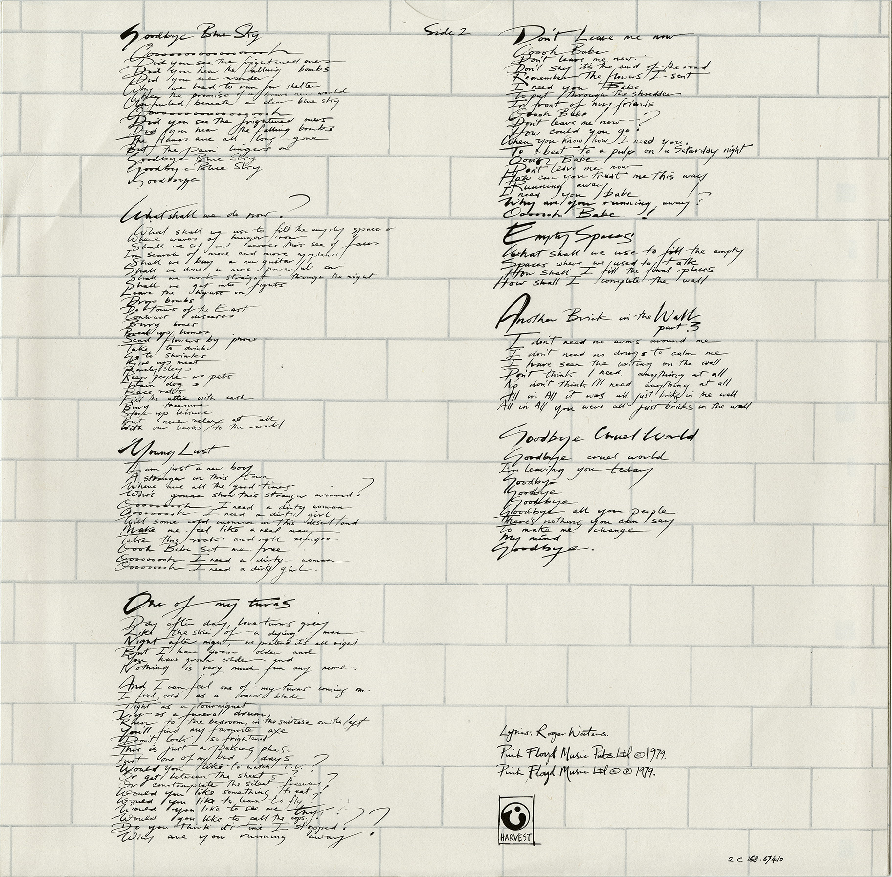 Inner Sleeves: [1 - front] [1 - back] [2 - front] [2 - back] White brick wall inner sleeves with lyrics.