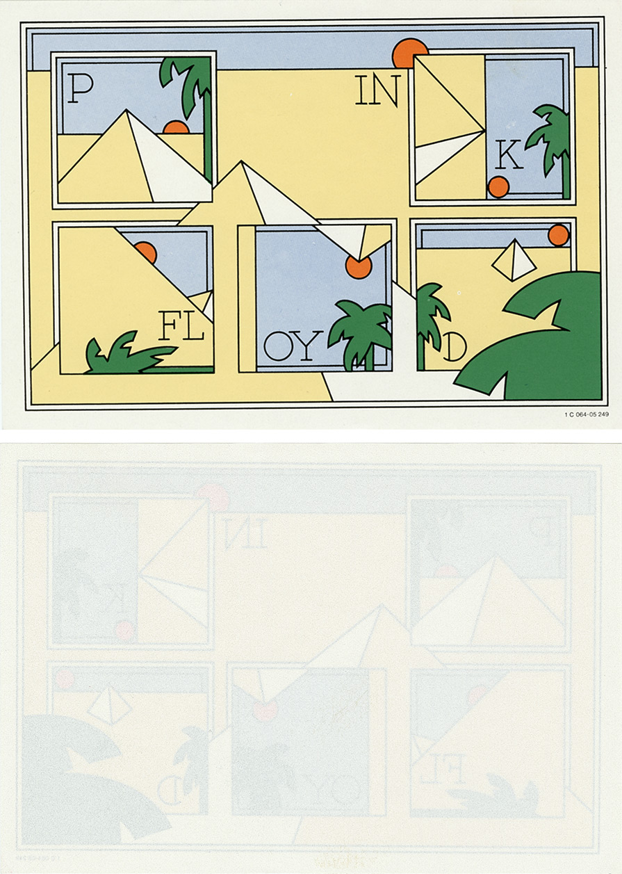 4) Graphic Insert (yellow): An insert of Pink Floyd graphics. Printed on thin glossy paper (not a sticker). "1C 064-05249" in the lower right border.