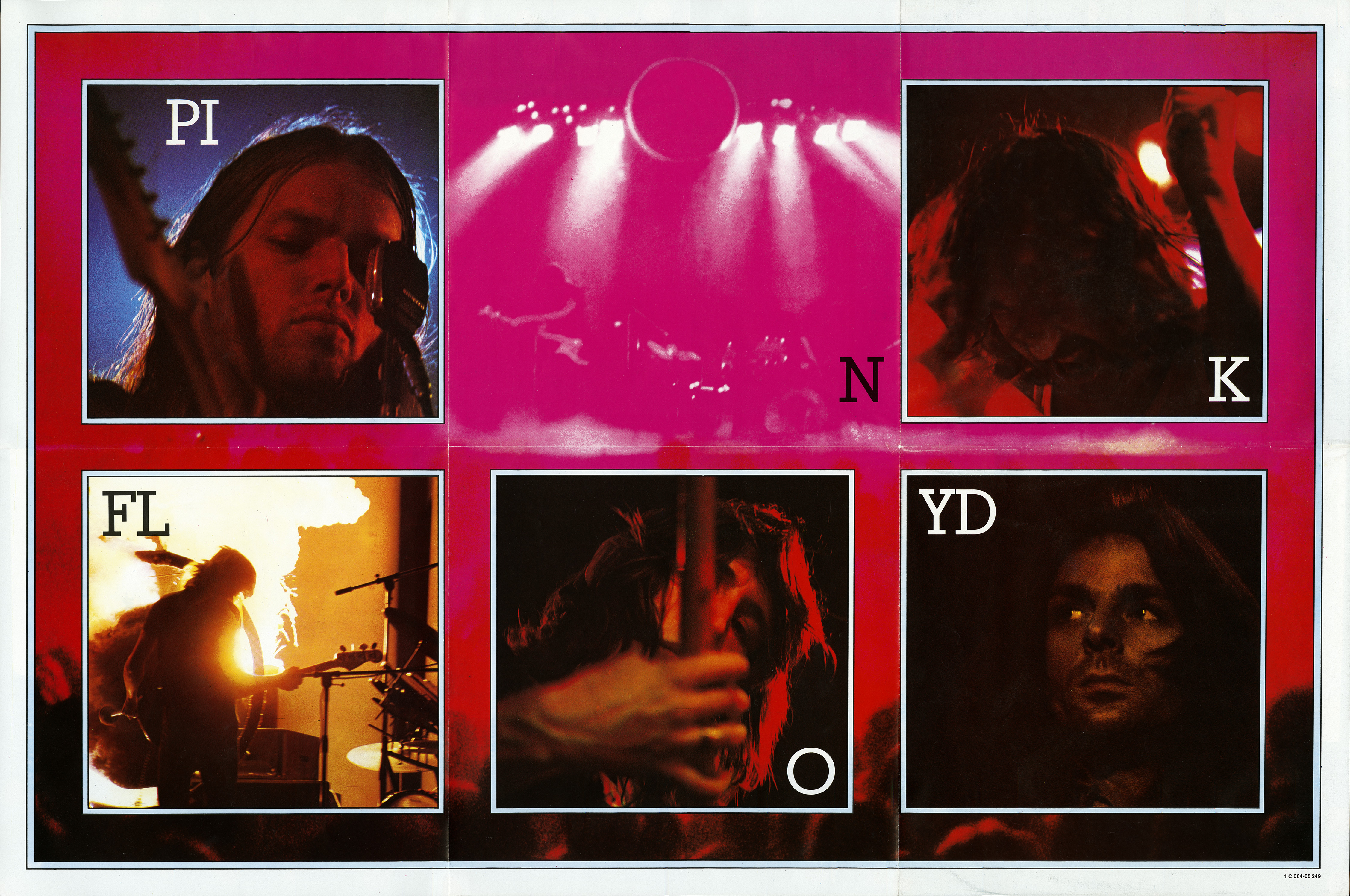 3) Graphic Insert (brown): An insert of Pink Floyd graphics. Printed on thin glossy paper (not a sticker). "1C 064-05249" in the lower right border.