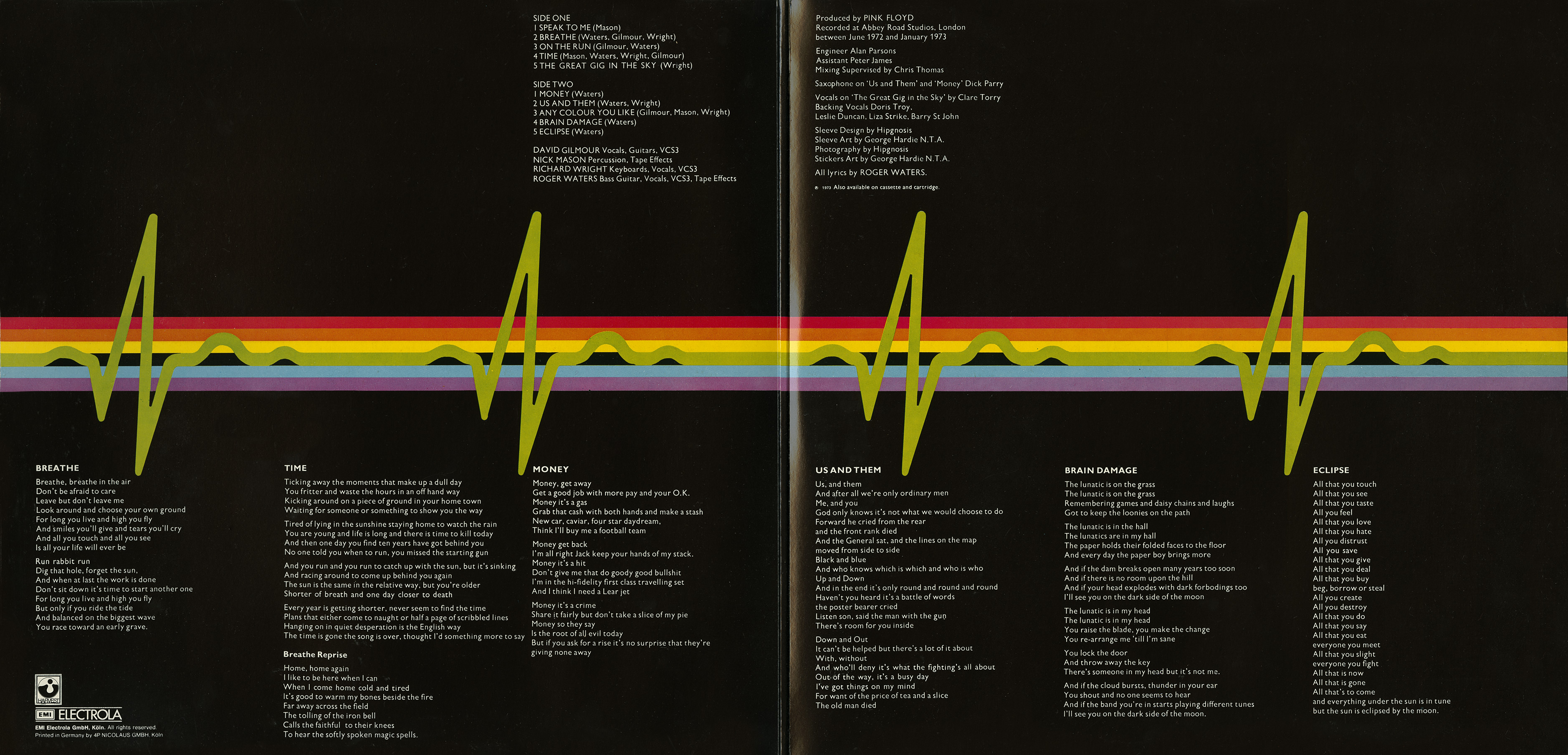 Inside Cover: Black with a heart beat line. Lyrics. Credits. Printed in Germany.
