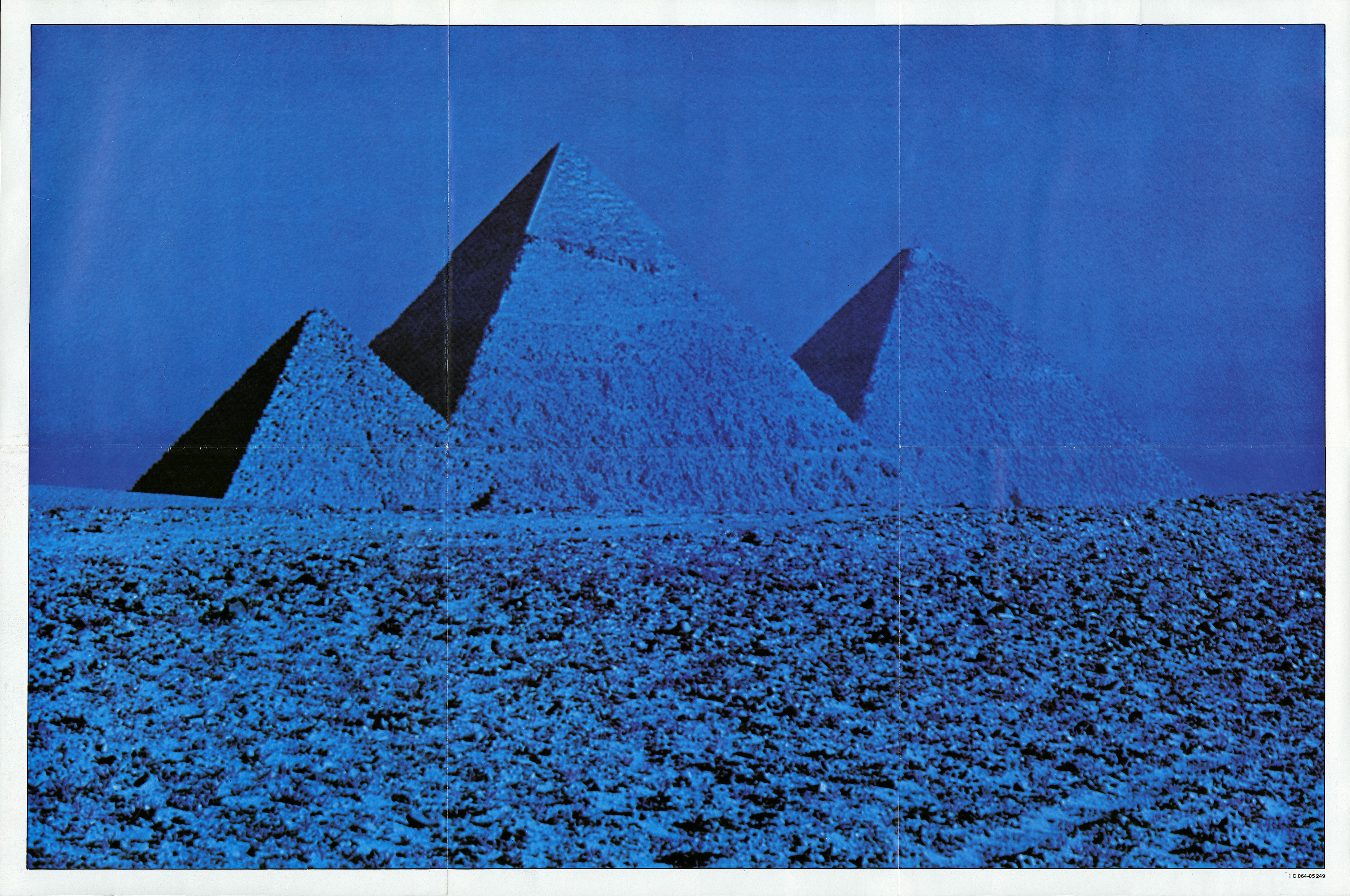 1) Pyramid Poster: A blue pyramid poster with "1C 064-05249" in the lower right border.