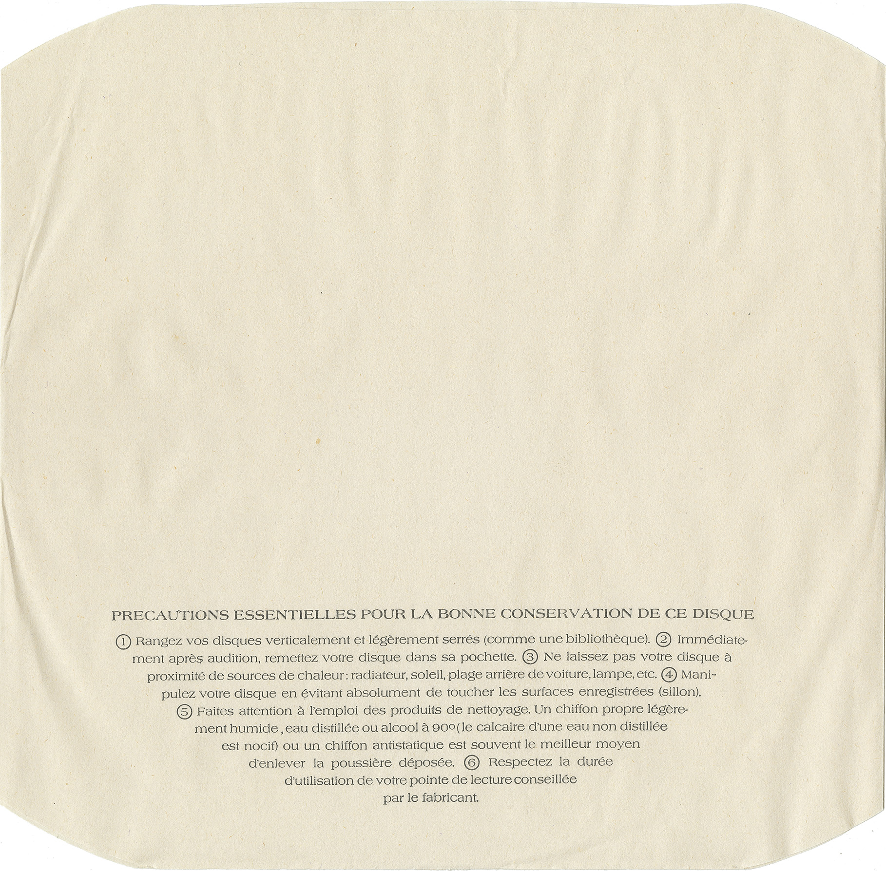 Inner Sleeve: White die-cut inner sleeve with text in French on the front. Back is blank.
