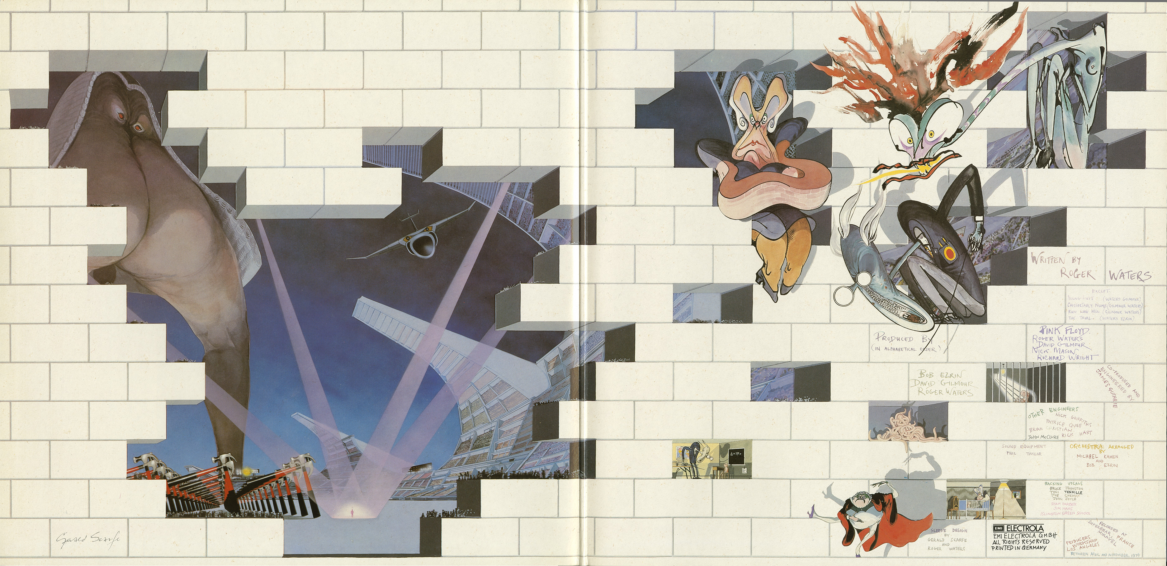 Inside Cover: White brick wall with Scarfe images. Credits. Printed in Germany.