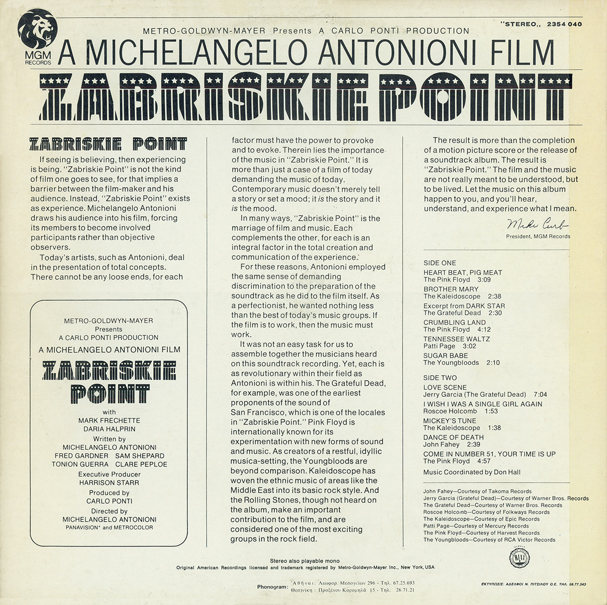 Spine: STEREO ZABRISKIE POINT M.G.M. 2354 040