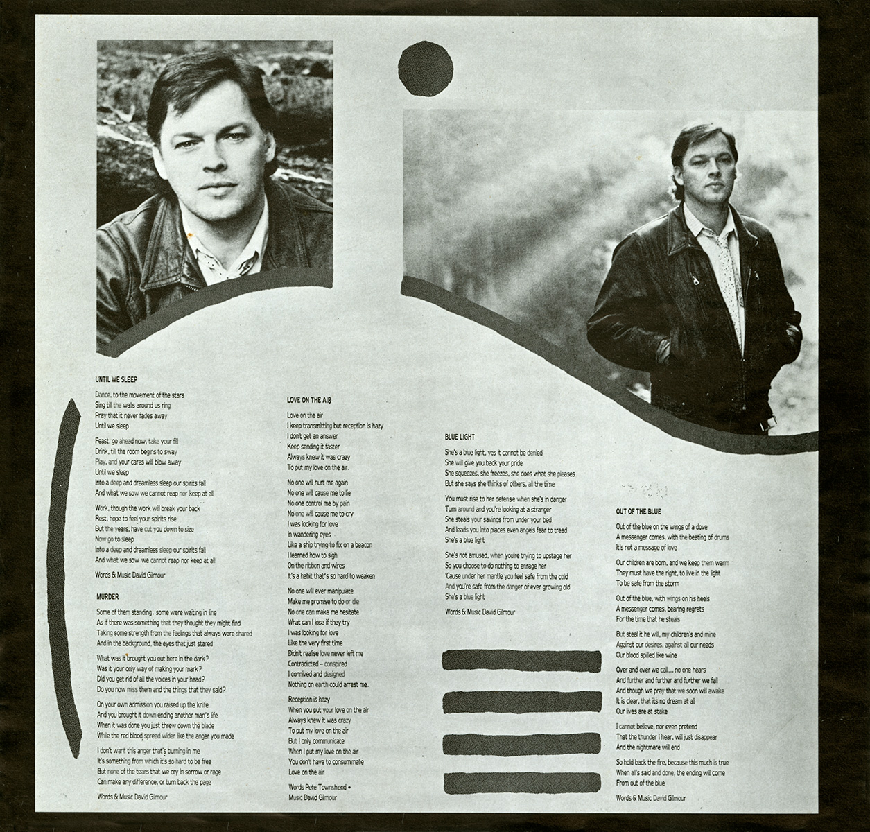 Insert: [front] [back] One sheet insert of lyrics and pictures of David Gilmour.