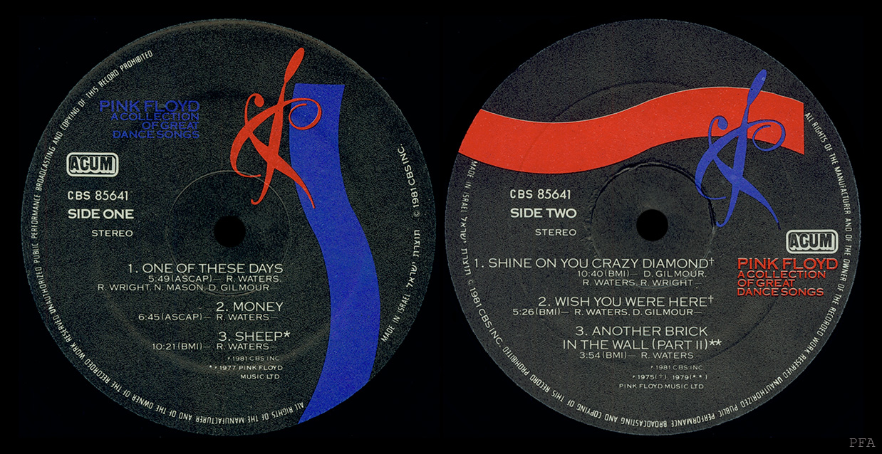 Spine: CBS 85641 PINK FLOYD A COLLECTION OF GREAT DANCE SONGS