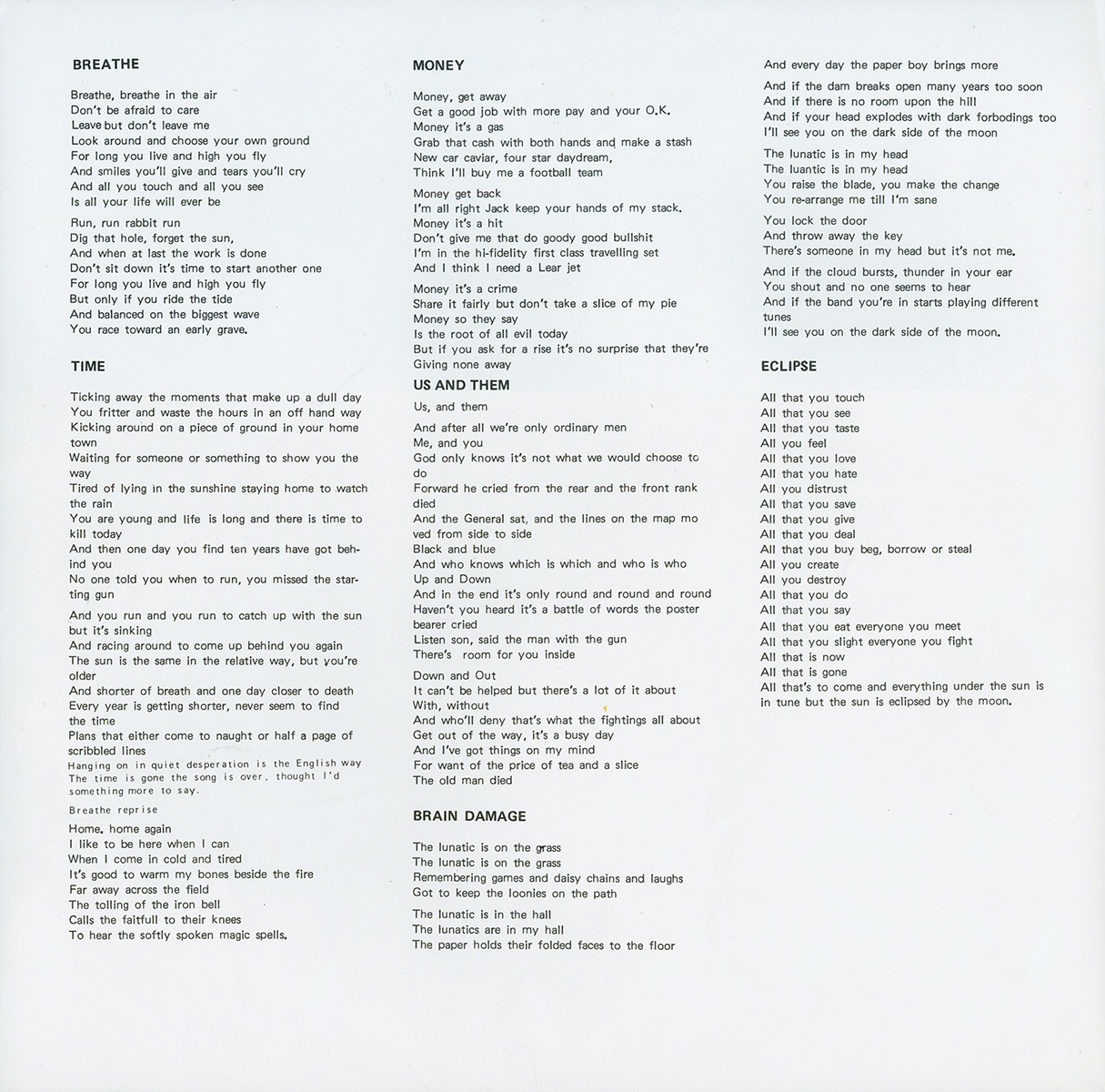 Insert: [front] [back] Includes an insert with lyrics on the front, and other records for sale on the back.