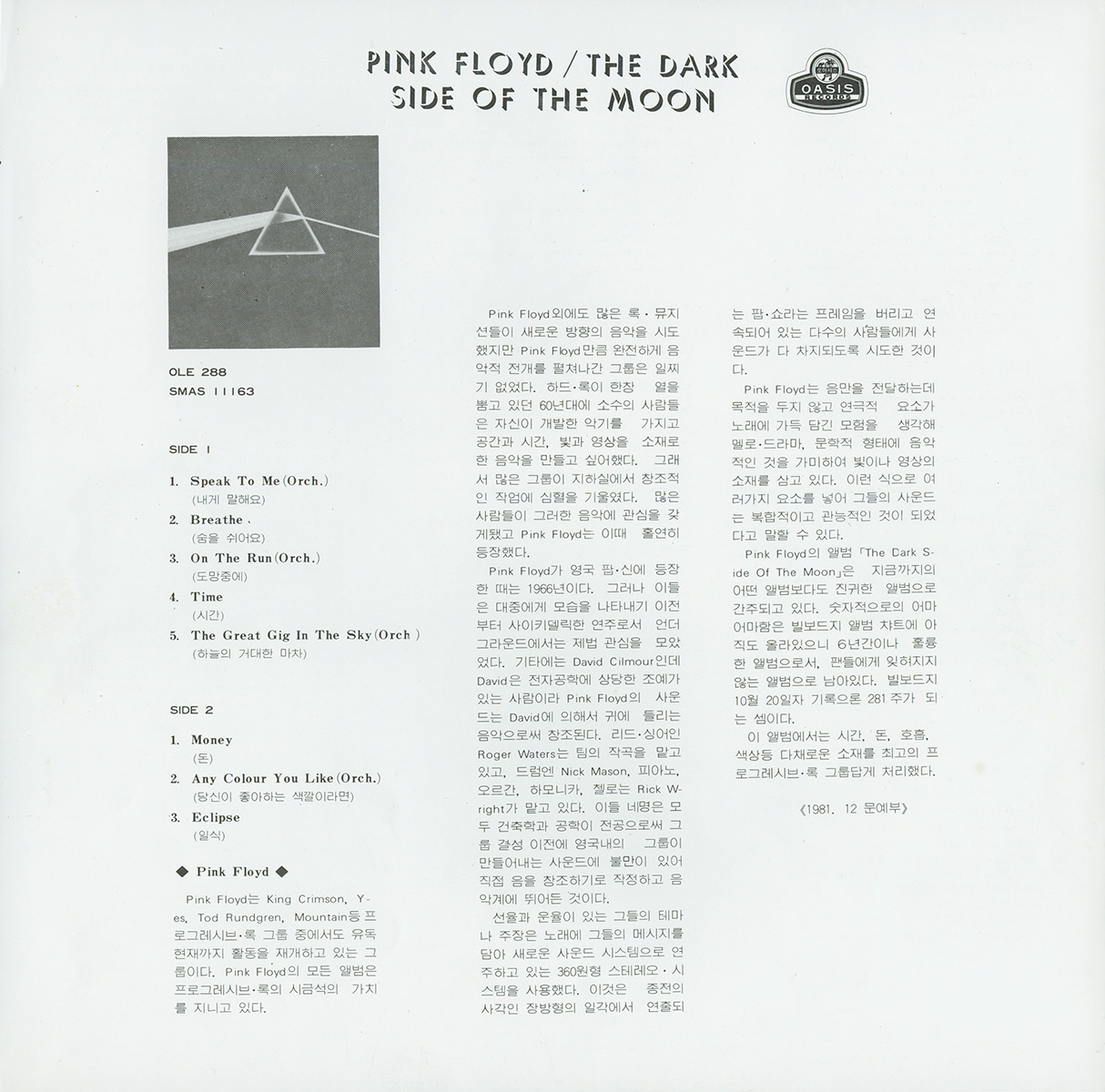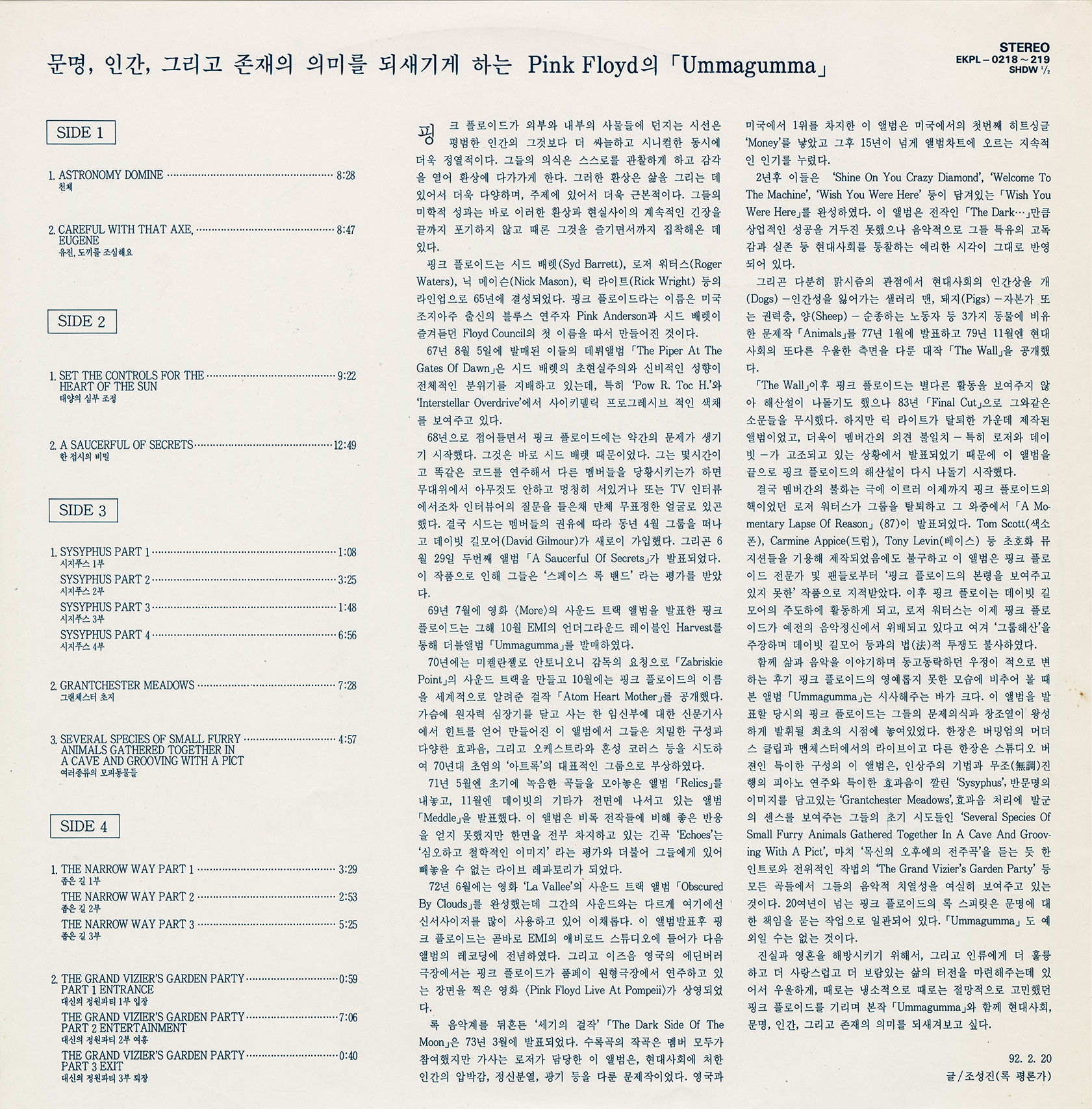 Insert: Includes a 4-page black and white insert with the lyrics from the original innersleeve, and additional Korean text.