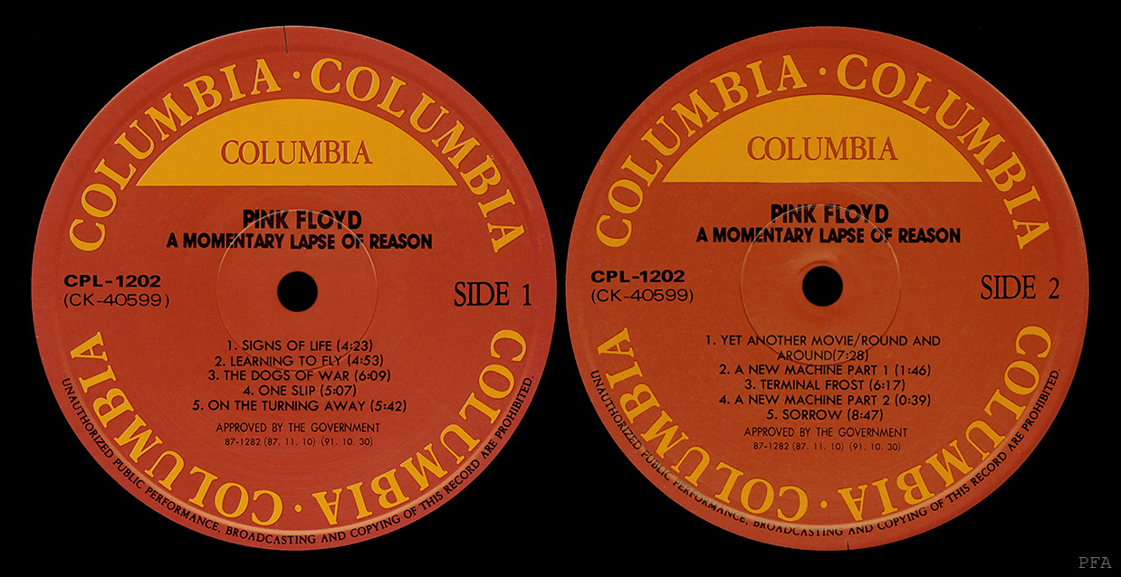 Spine: SONY MUSIC PINK FLOYD / A MOMENTARY LAPSE OF REASON CPL-1202(CK 40599)