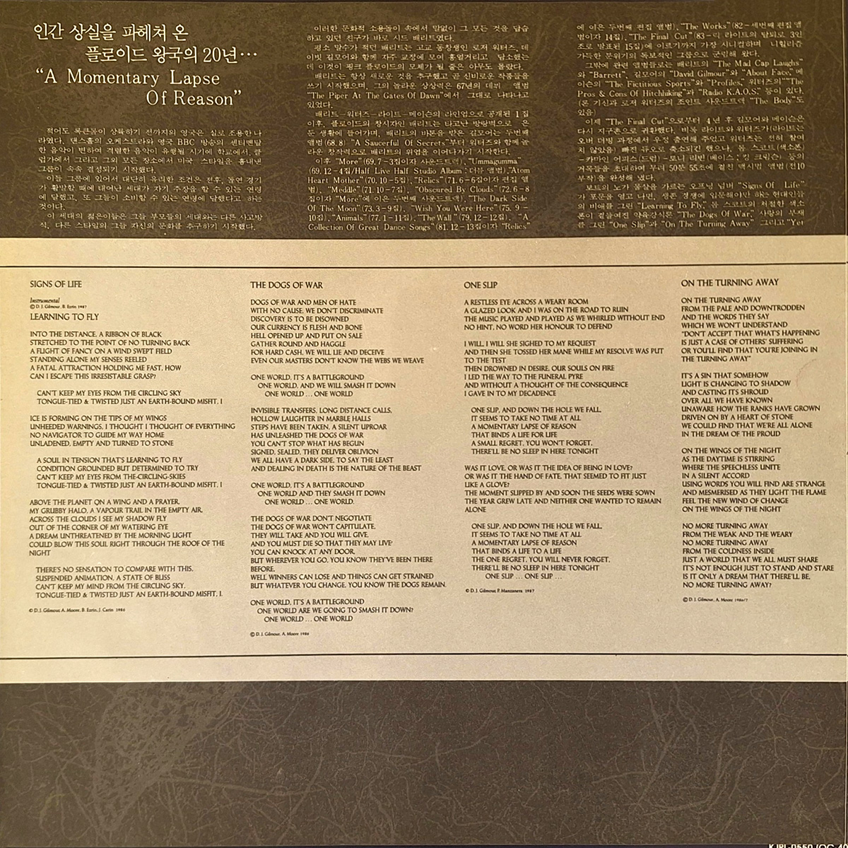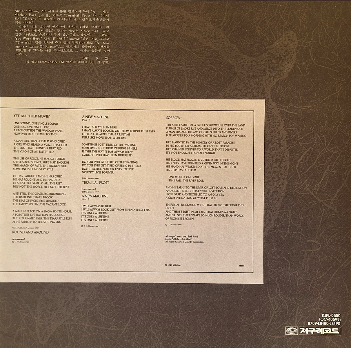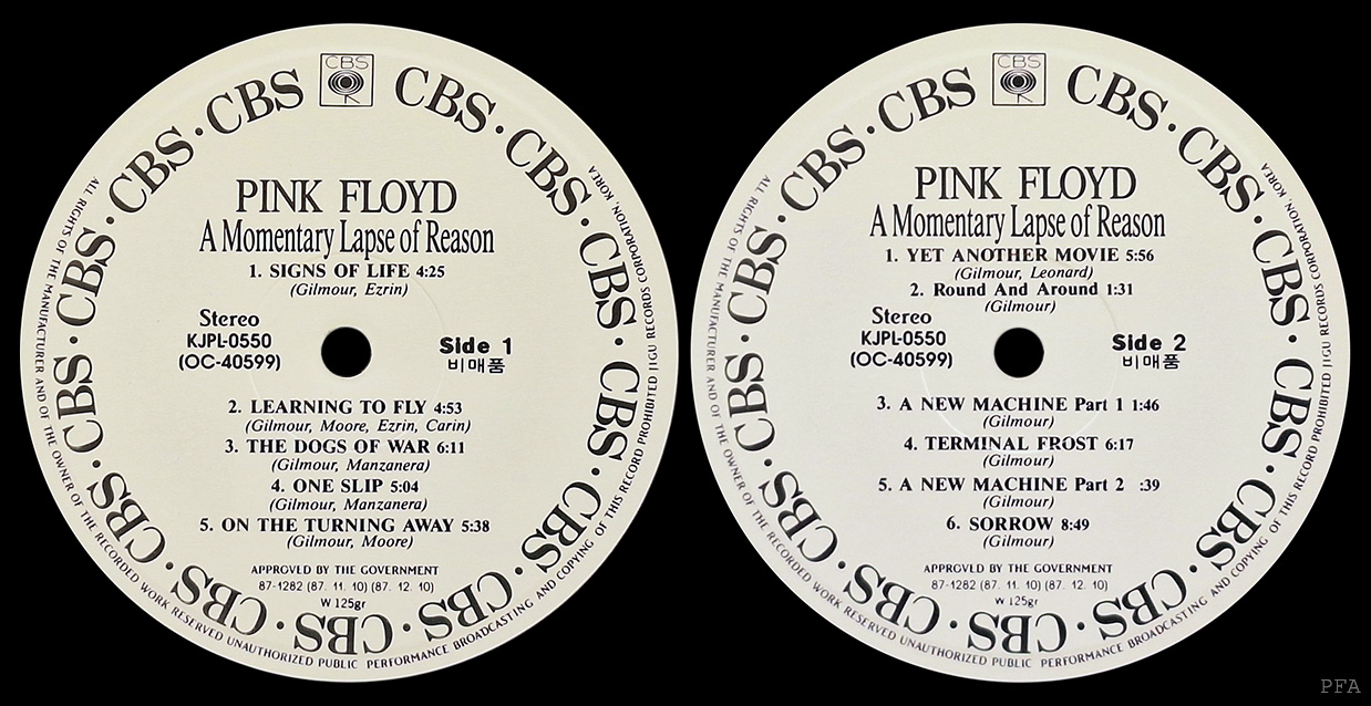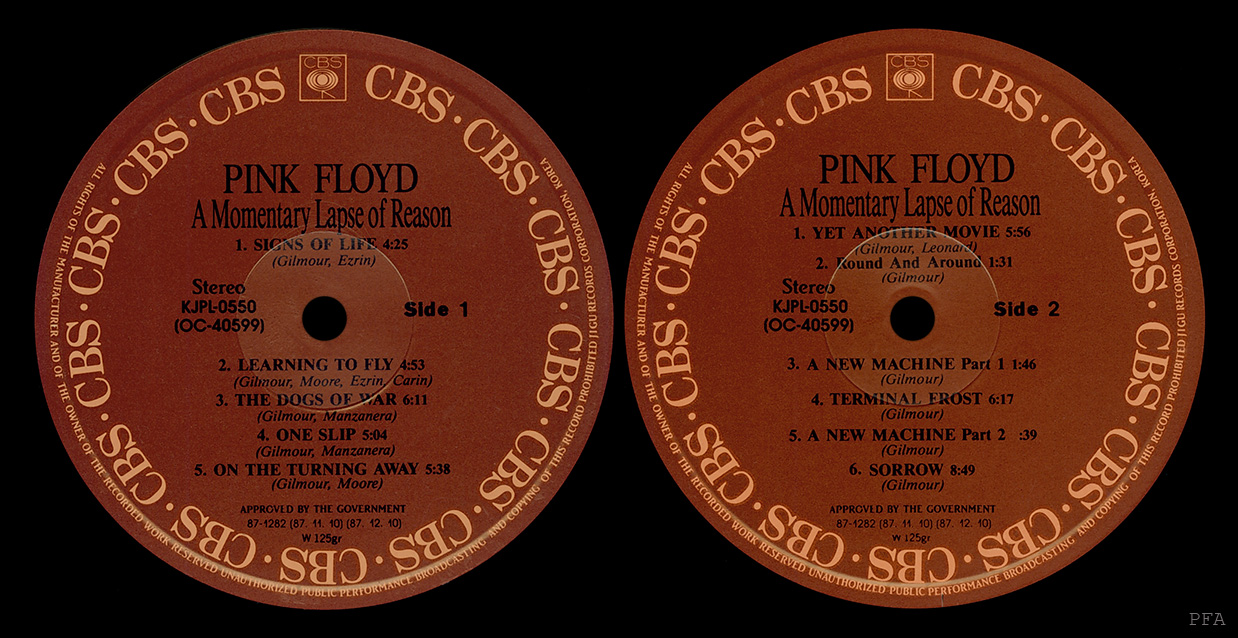 Spine: KJPL-0550 (OC 40599) PINK FLOYD/A MOMENTARY LAPSE OF REASON STEREO