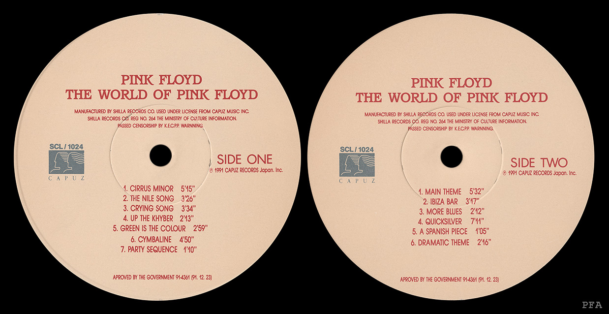Labels: Ochre label. "The World Of Pink Floyd." Capuz SCL/1024 on Korean / Japanese label.