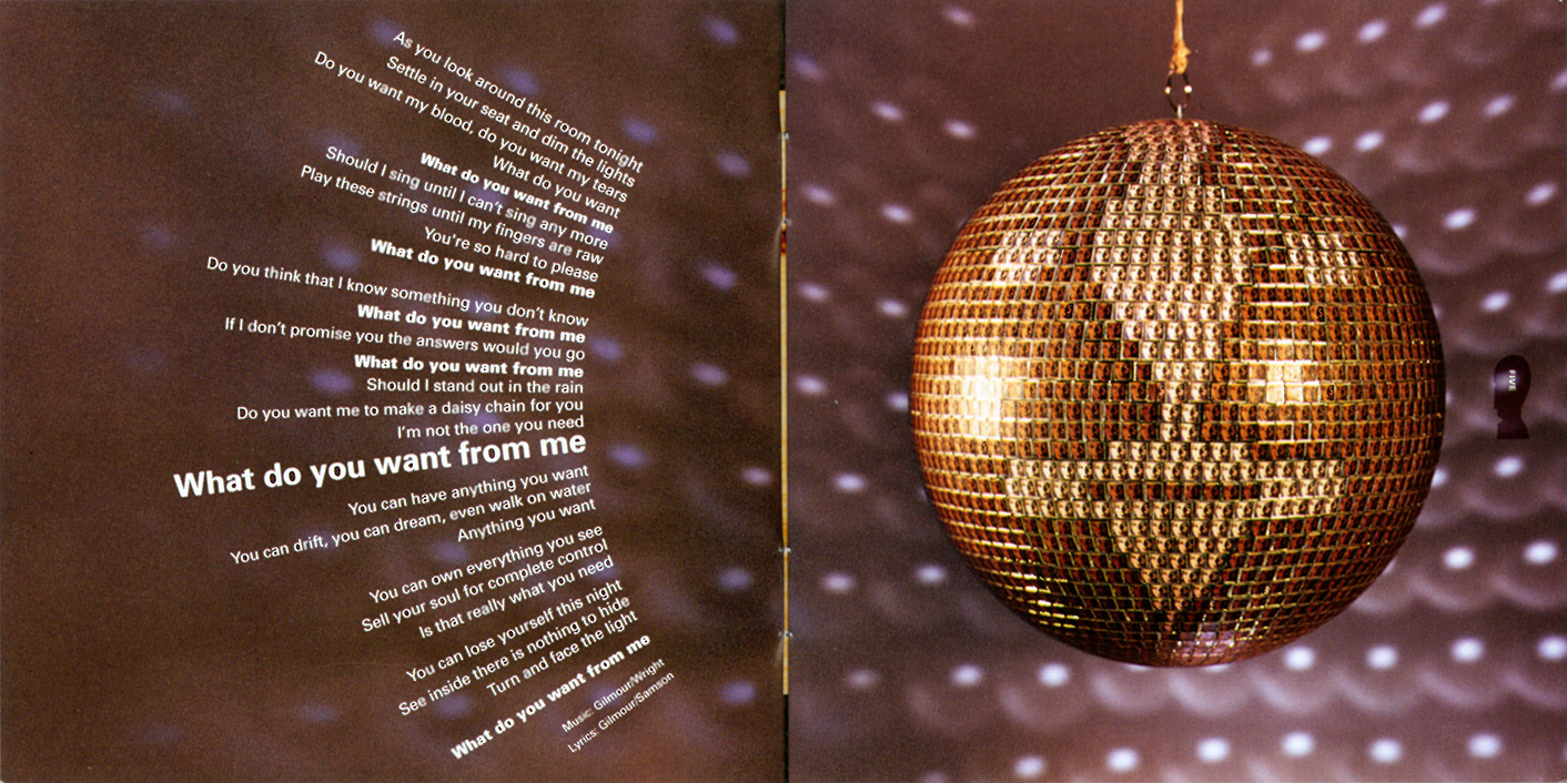 Side 1: Cluster One, What Do You Want From Me, Poles Apart