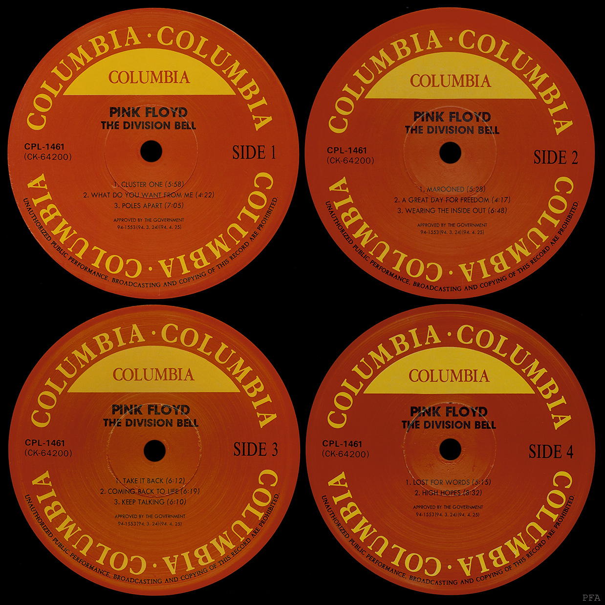 Spine: COLUMBIA PINK FLOYD/THE DIVISION BELL CP2L-1461 [CK-64200]