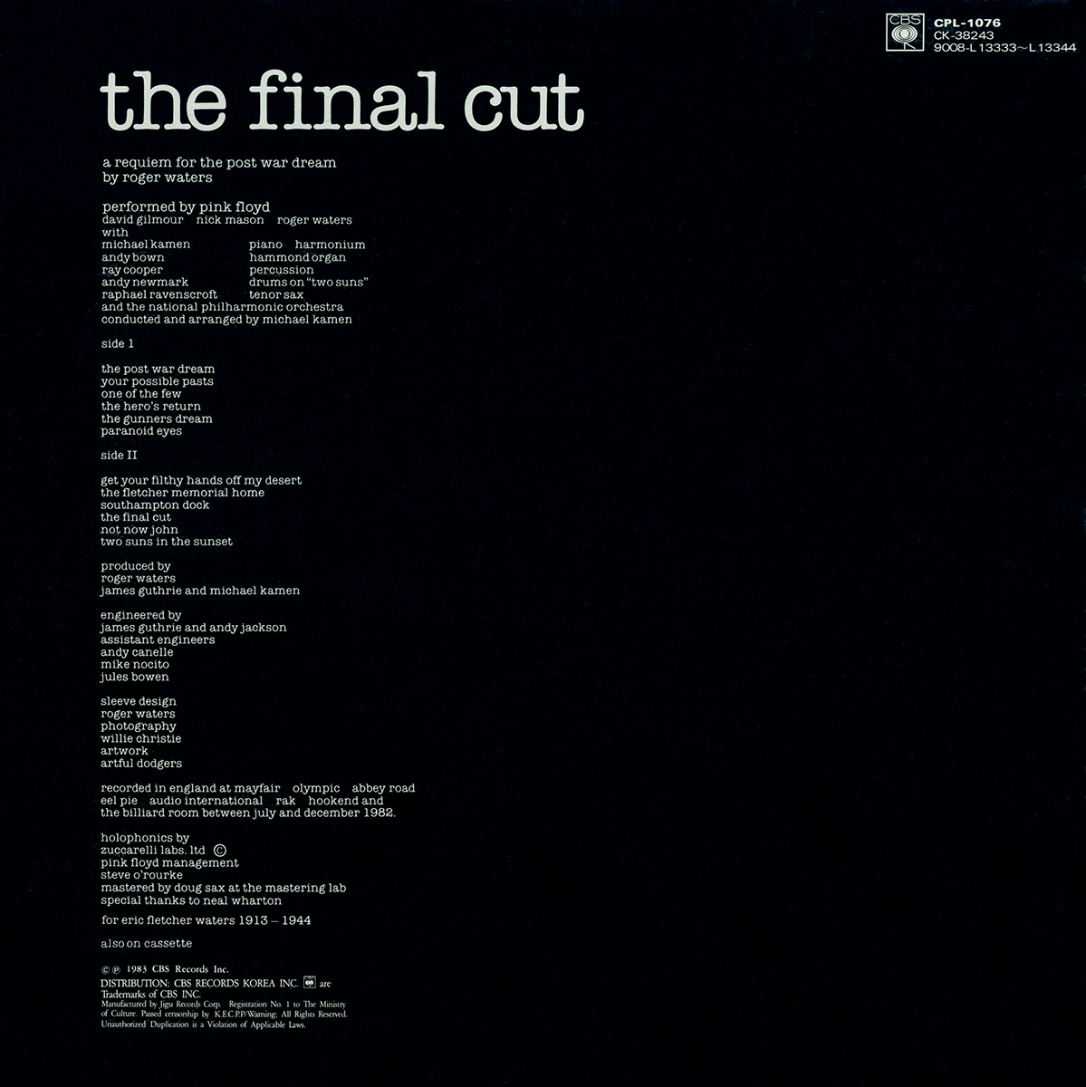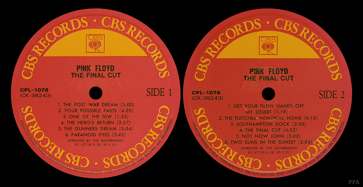 Spine: CBS PINK FLOYD / THE FINAL CUT CPL-1076(CK38243)