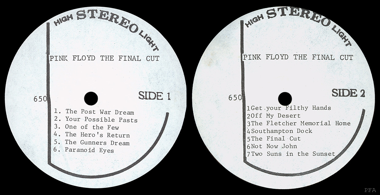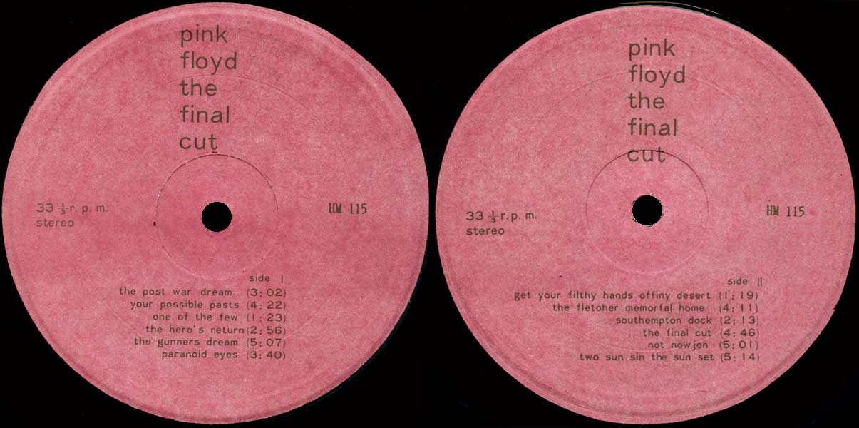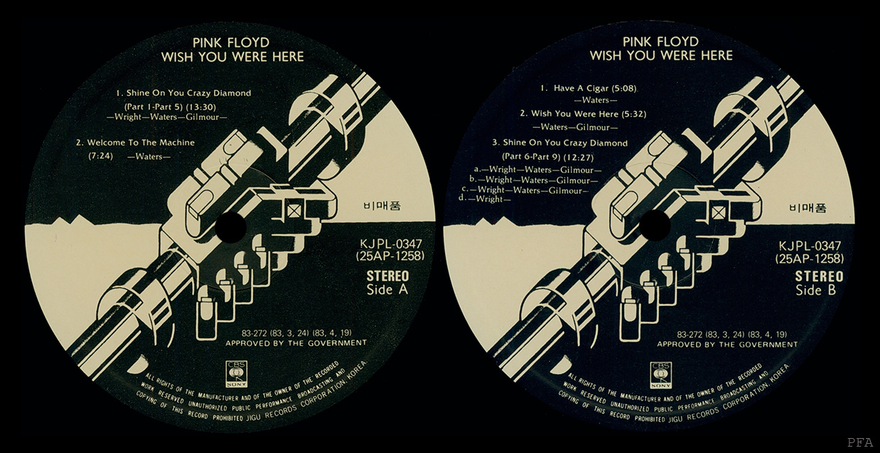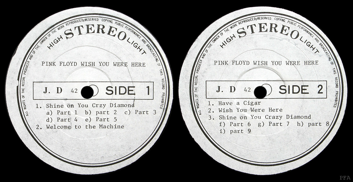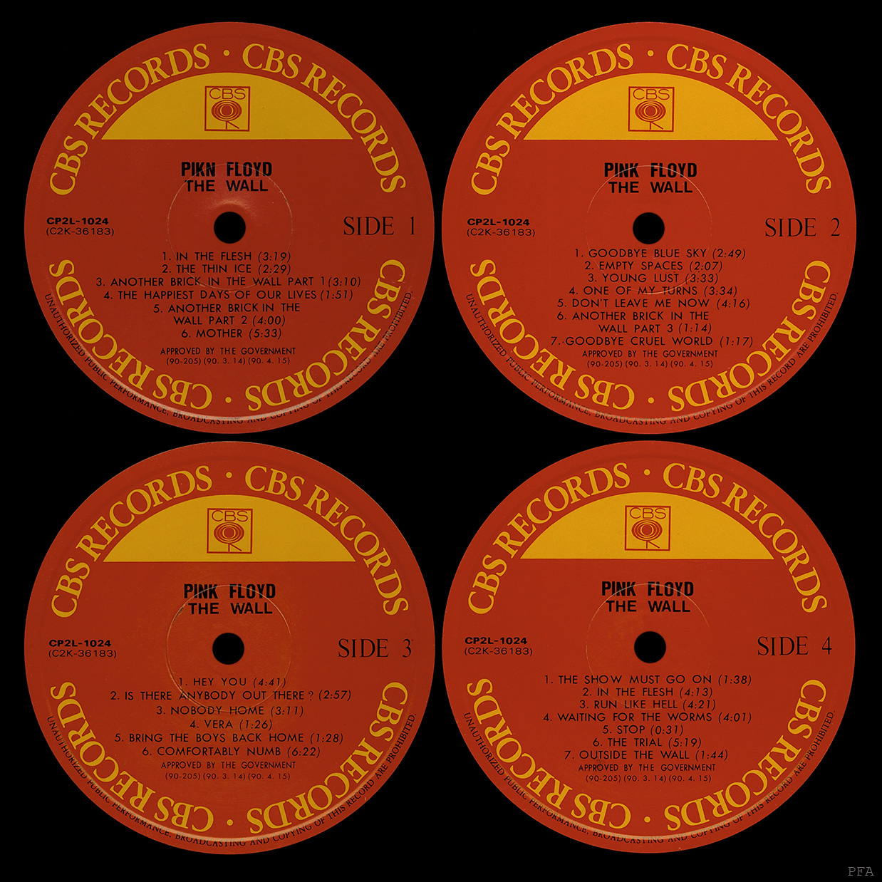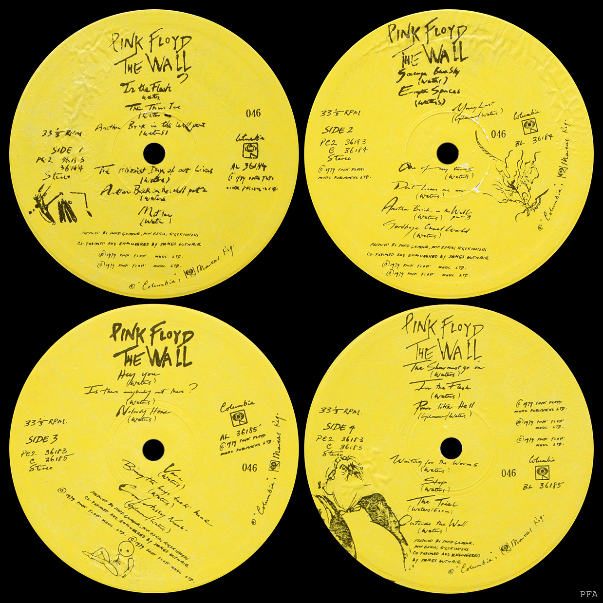 Release Information: Label #1 lists the songs: Anothe Brick In The Wall (Part II), Money Lust, Another Brick In the Wall (Par III), and Waiting For The Warms.