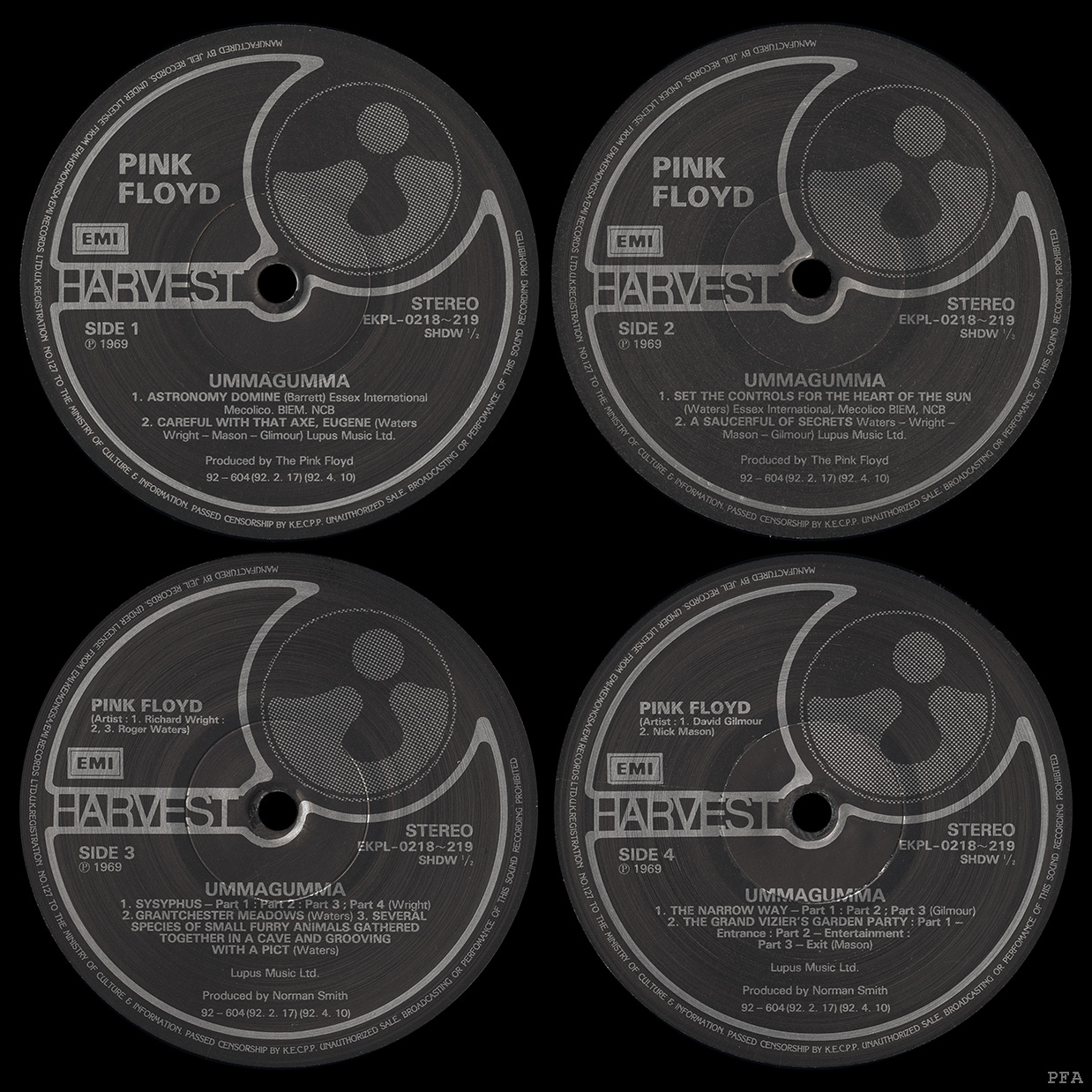 Spine: EKPL-0218~0219/SHDW 1/2 PINK FLOYD/UMMAGUMMA STEREO / S.Q.S EMI