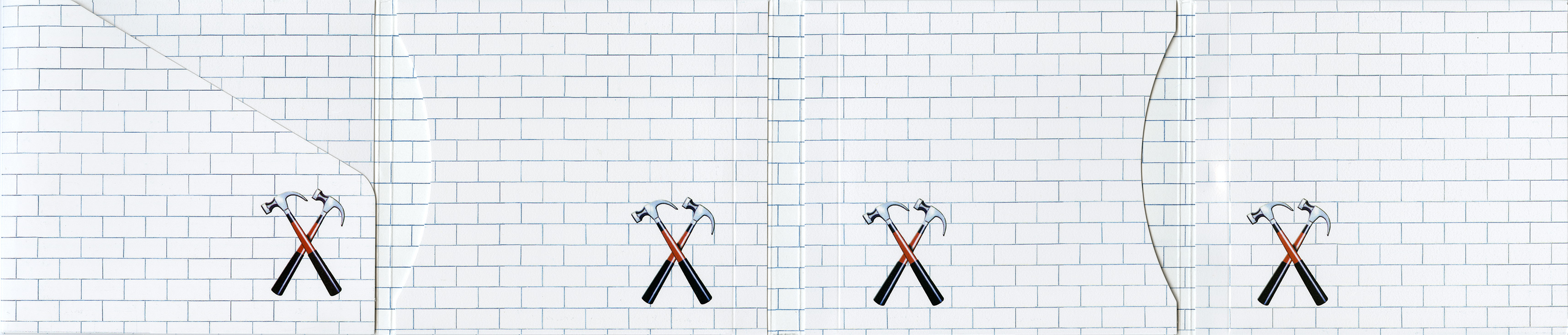 Inside Cover: White brick wall with marching hammers.