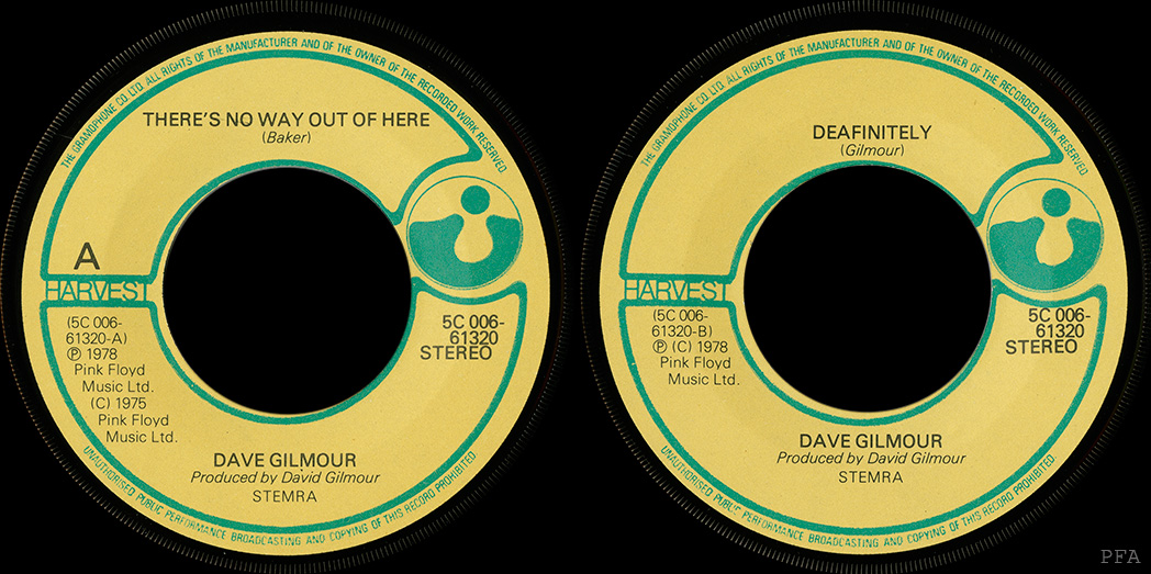 Back Cover: David Gilmour album. Song titles on album. Credits.