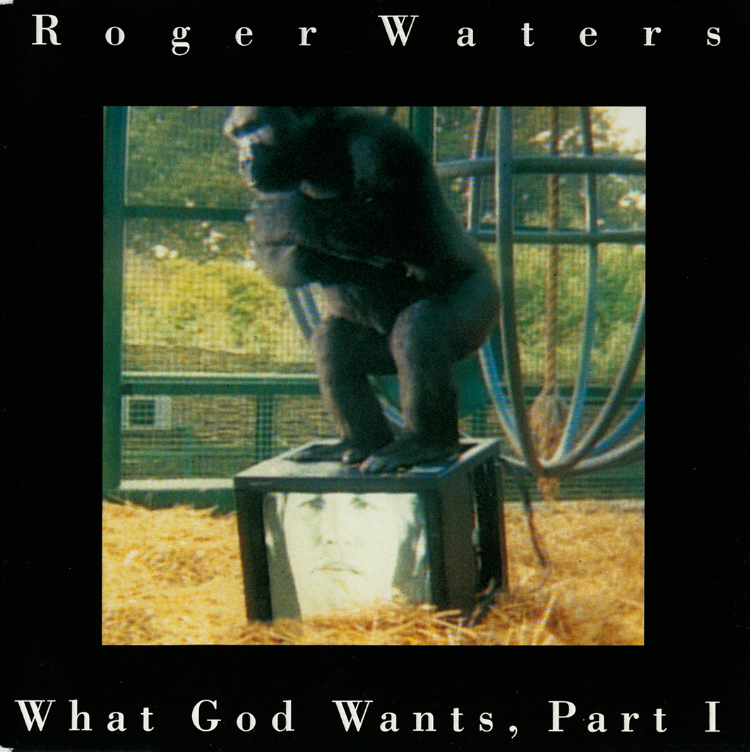 Front Cover: Across the top it says Roger Waters. In the middle is a small picture of a monkey on a TV. Across the bottom it says: What God Wants, Part 1.