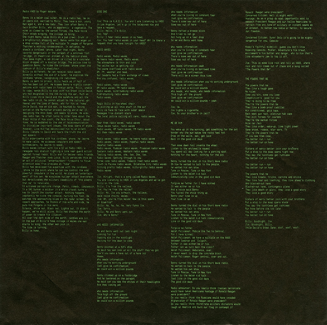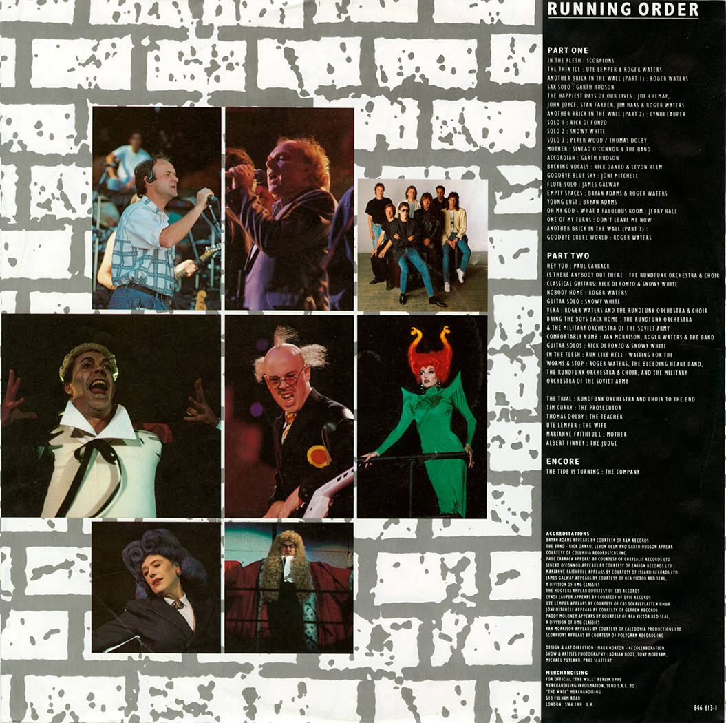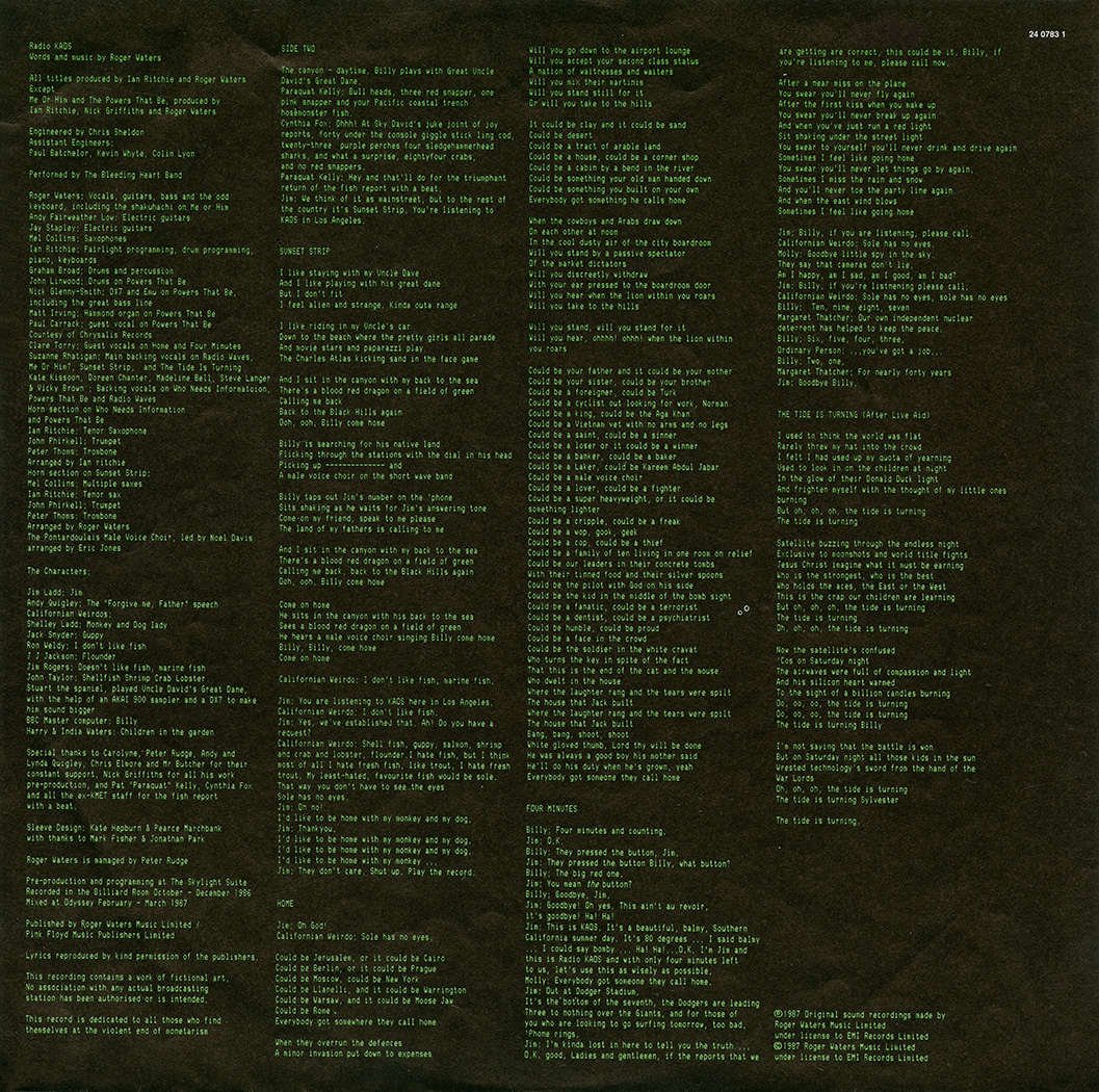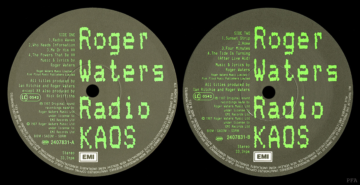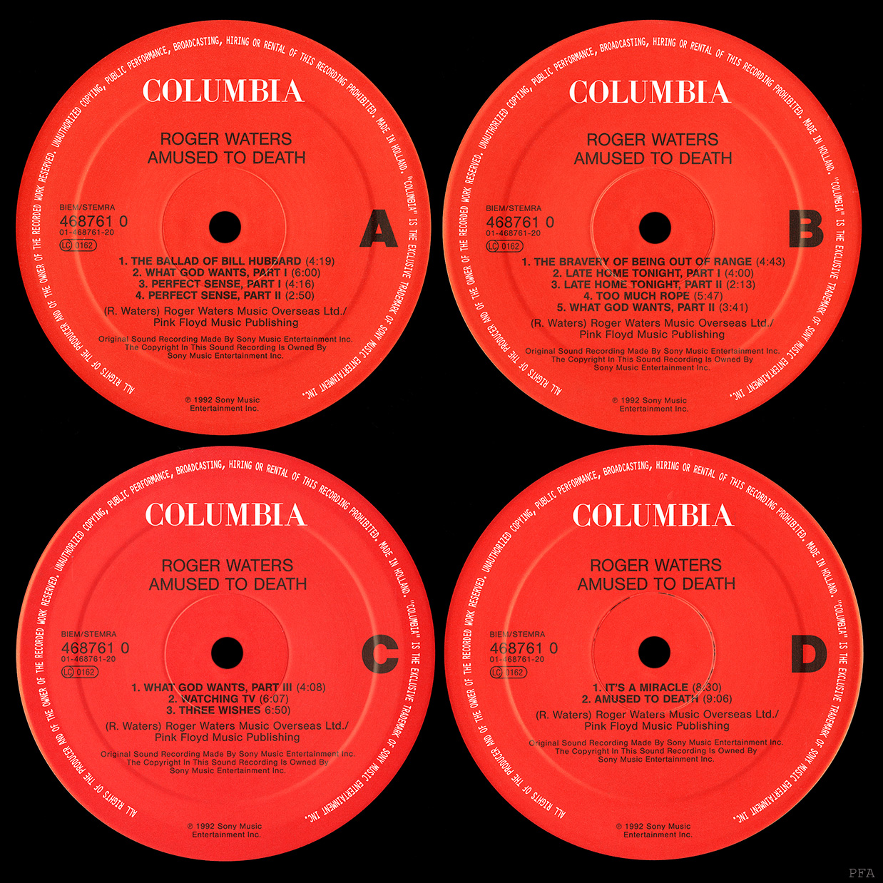 1) ROGER WATERS-SIDE ONE-2 01-468761-20-1A1 `A' TML-M / ROGER WATERS SIDE TWO-1 01-468761-2 B-x A TML-X / ROGER WATERS-SIDE THREE-2 01-468761-20-1C1 A TML-X / ROGER WATERS SIDE FOUR-2 01-468761-20-1D1 A TML-X (all four written, except TMLs stamped)