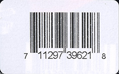 Bar code Sticker: White bar code sticker on back shrink wrap.