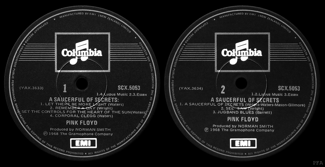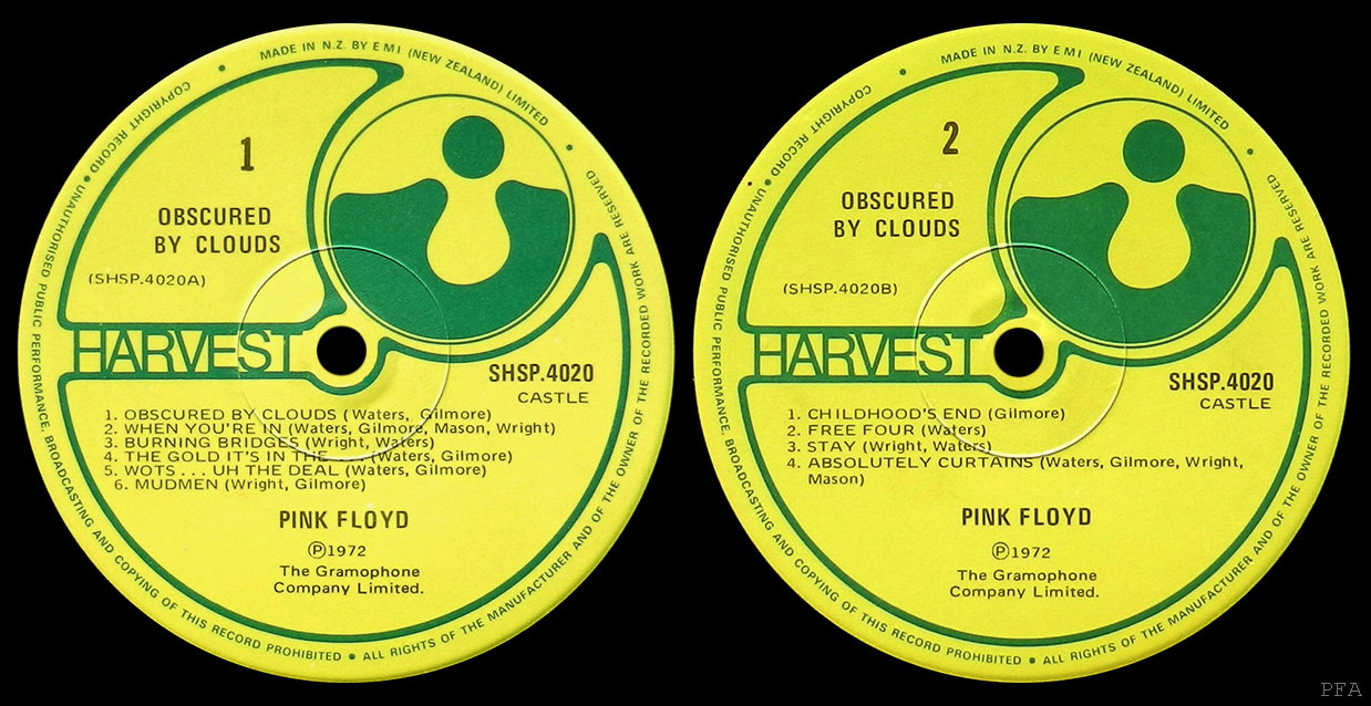 Cover: Receding pictures of band members. Laminated. In the bottom left corner of right hand inside cover, it says: MARKETED BY EMI NEW ZEALAND LIMITED, P.O.BOX 30-476, LOWER HUTT P.1970. To the left is the HARVEST logo. To the right is the twin boxed EMI logo.