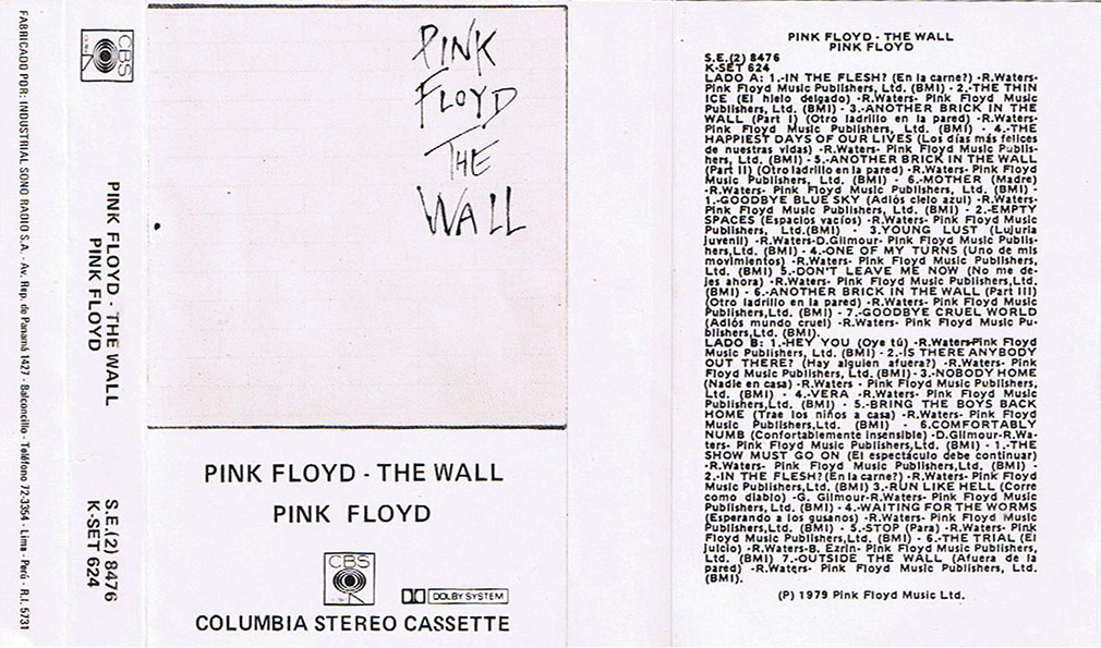 Cover: White brick wall with title. Songs at bottom in black.