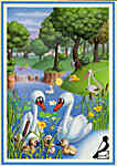 Description: Cartoon ducks. Also issued with a picture of a rocky stream, with the title "Kazde zycie ku morzu milosci."