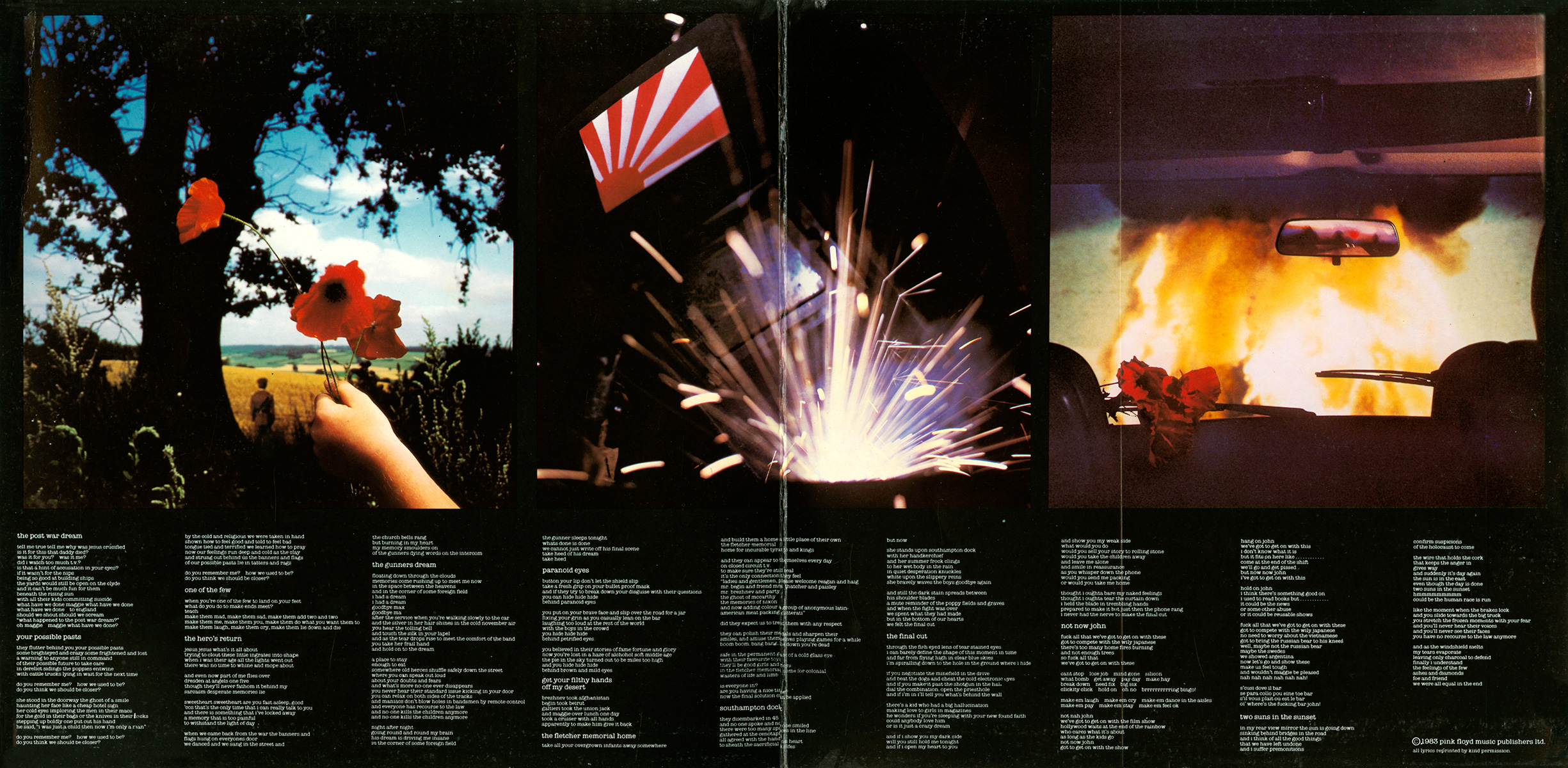 Inside Cover: White brick wall with Scarfe drawings. Credits..