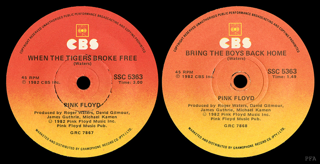 Release Information: Some copies have been found mis-pressed, with the song When the Tigers Broke Free on both sides.