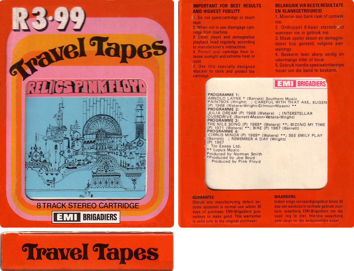 This is a discography of 8 track tapes that have been released in South Africa by Pink Floyd.