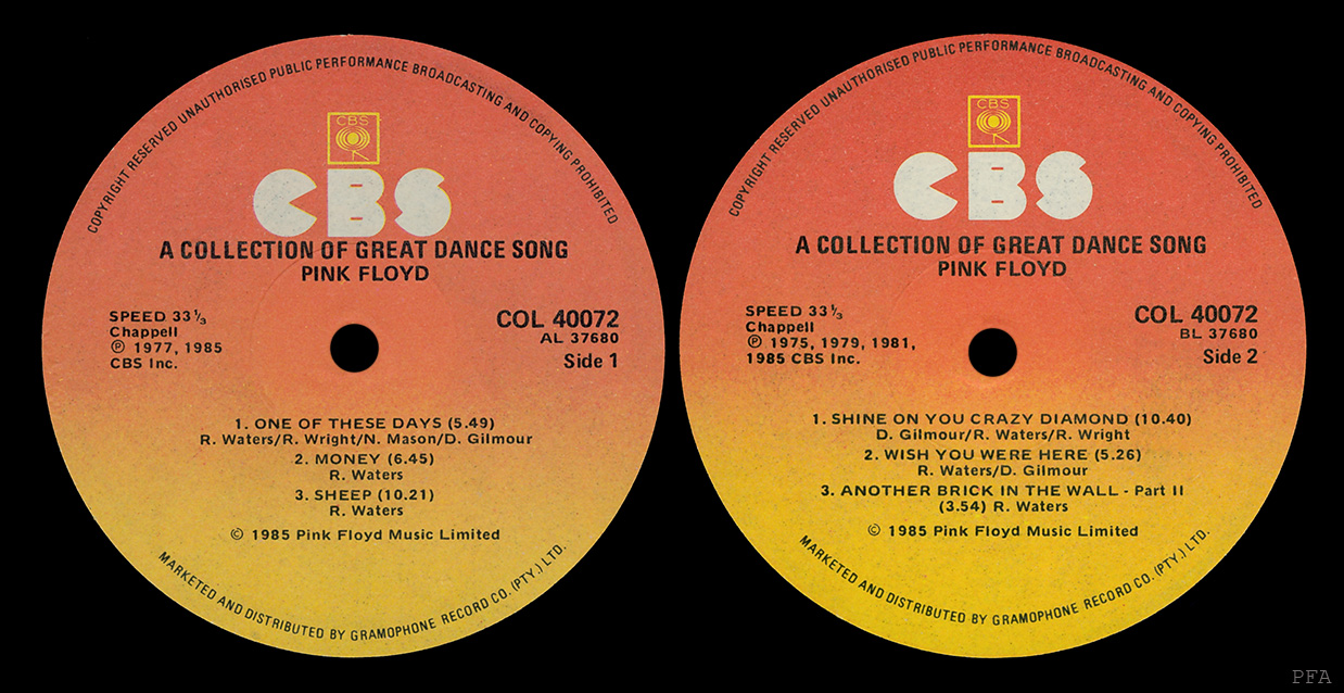 Spine: COL 40072 A COLLECTION OF GREAT DANCE SONGS PINK FLOYD