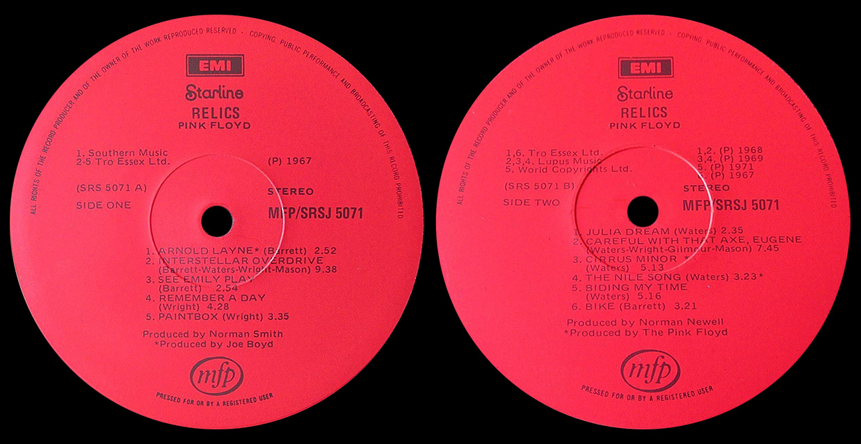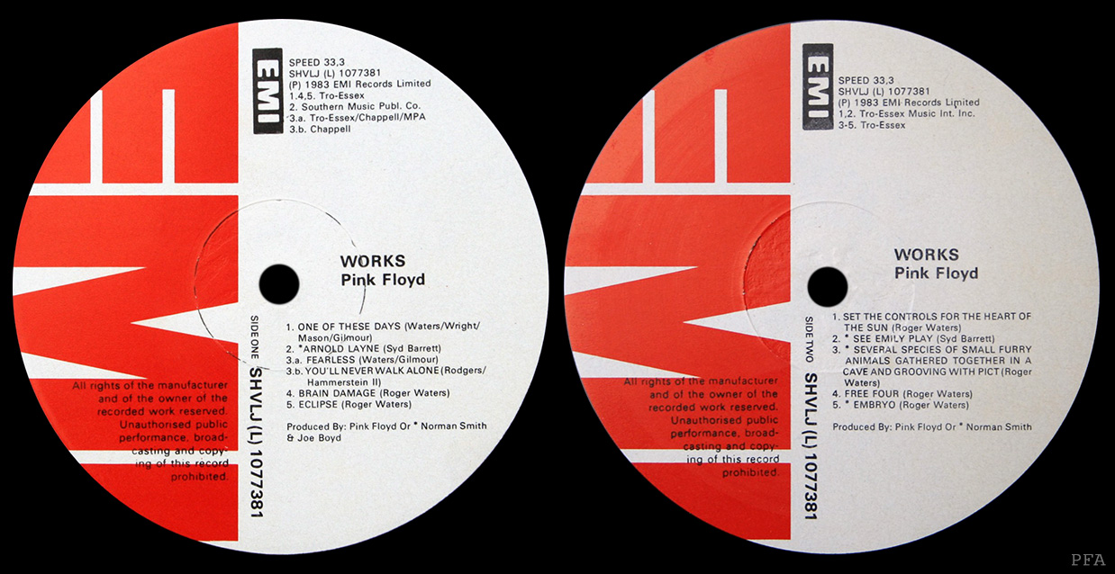 Release Information: Third issue. Library rental copies have been found with stickers on the back cover that say "AVOID" next to the songs Sheep, and Another Brick in the Wall (Part 2), and a "CANCELLED X" sticker on the label.