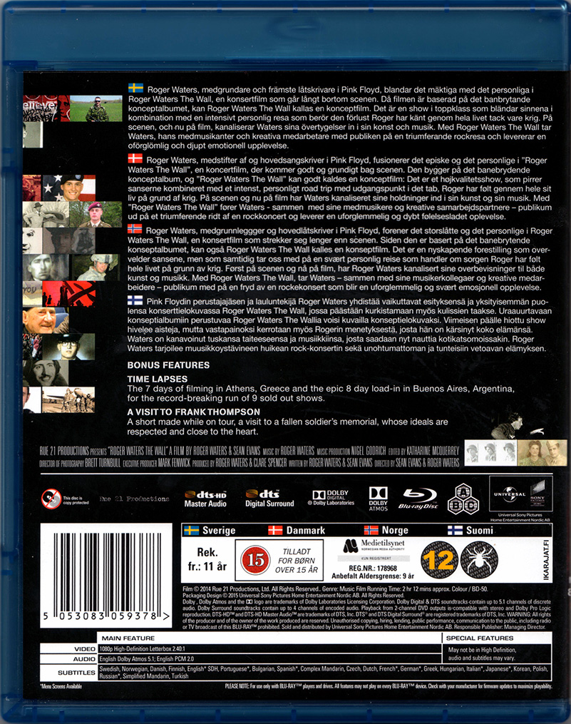 Release Information: Nordic Blu-ray of the film Roger Waters The Wall by Roger Waters and Sean Evans. This release was done for the countries Sweden, Denmark, Norway, and Finland.