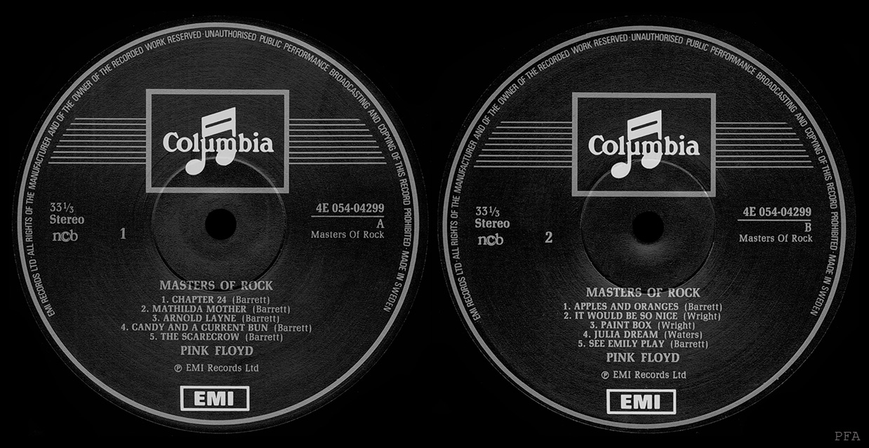 Spine: 4 E 054-04299 MASTERS OF ROCK PINK FLOYD