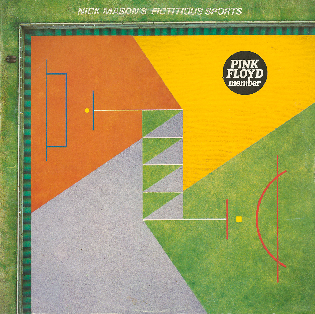 Front Cover: A fictitious playing field. Round sticker says "Pink Floyd member." Matte.