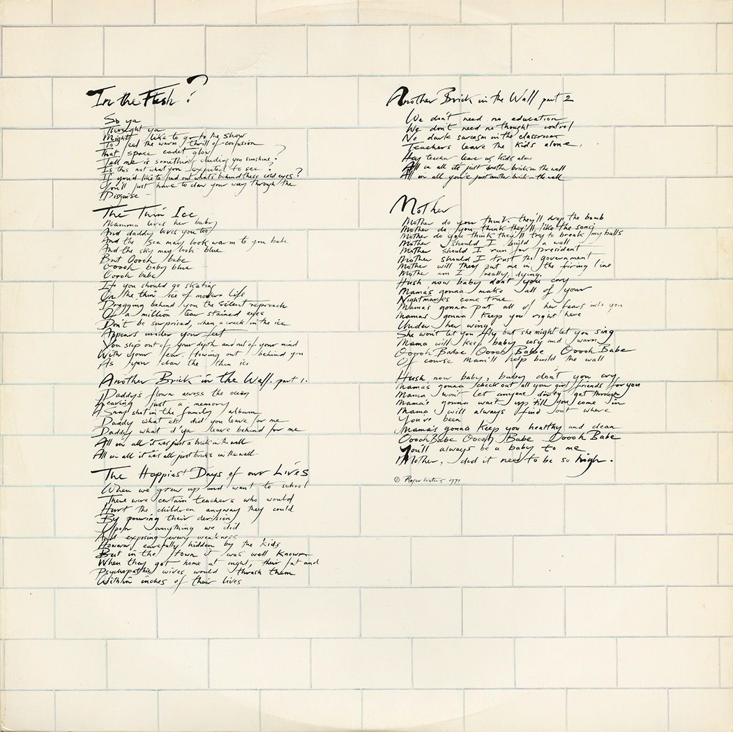 Front Cover: White brick wall. Issued with a " PINK FLOYD THE WALL" sticker on the cover.
