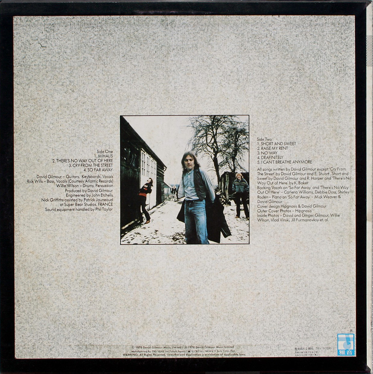 Front Cover: Picture of David Gilmour. Heavy cardboard sleeve.