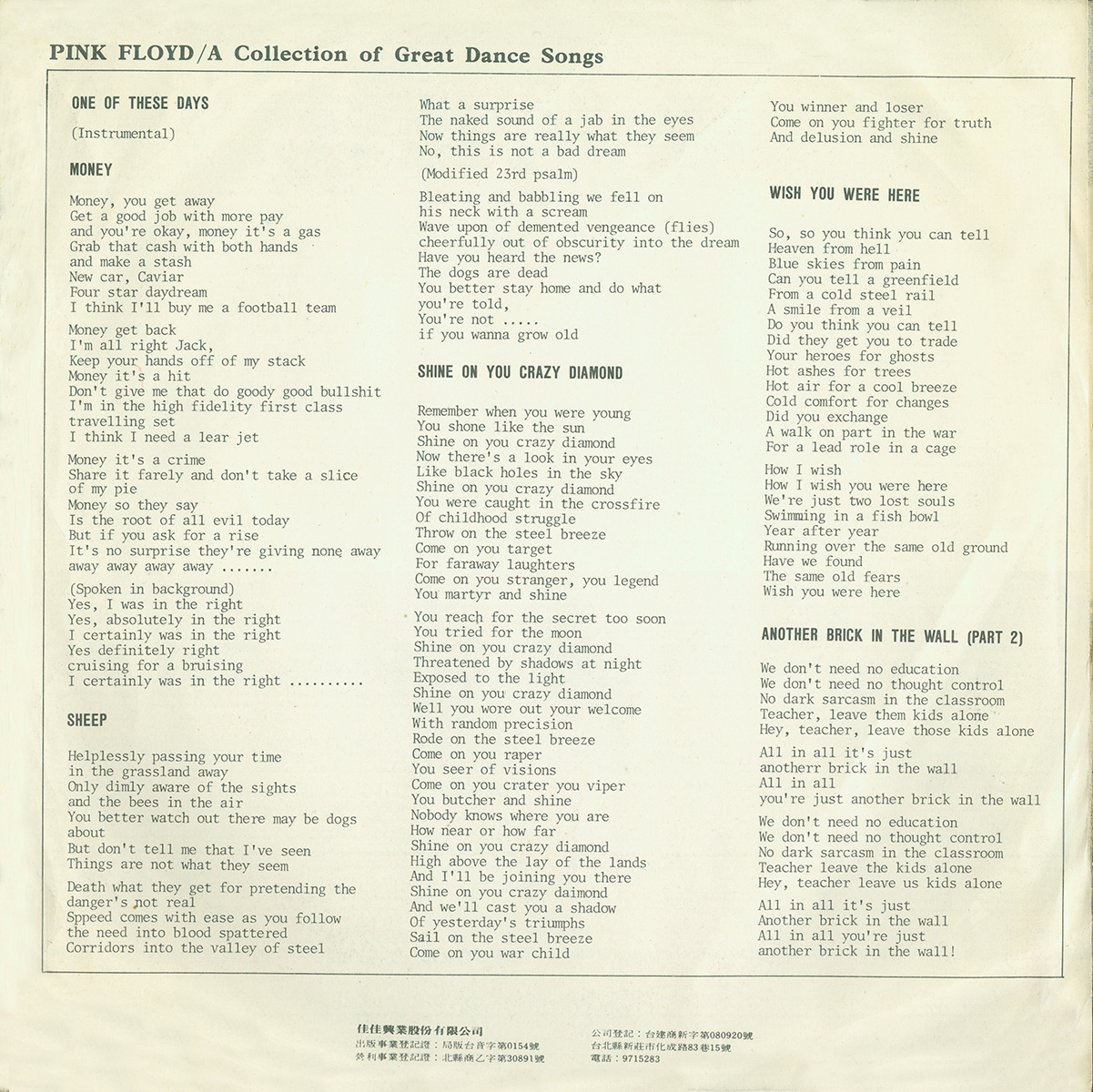 Release Information: Includes insert with lyrics. Chinese text on labels.
