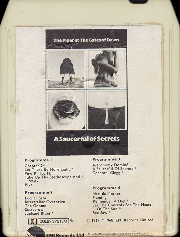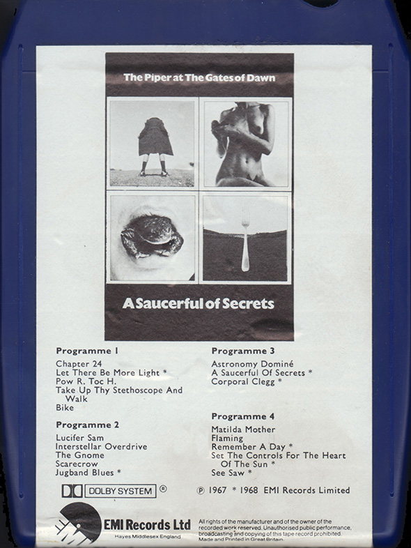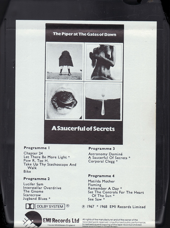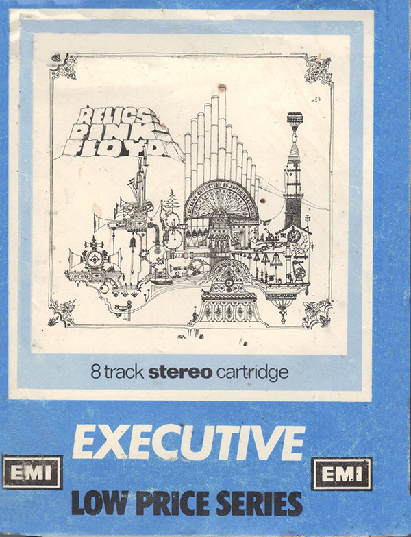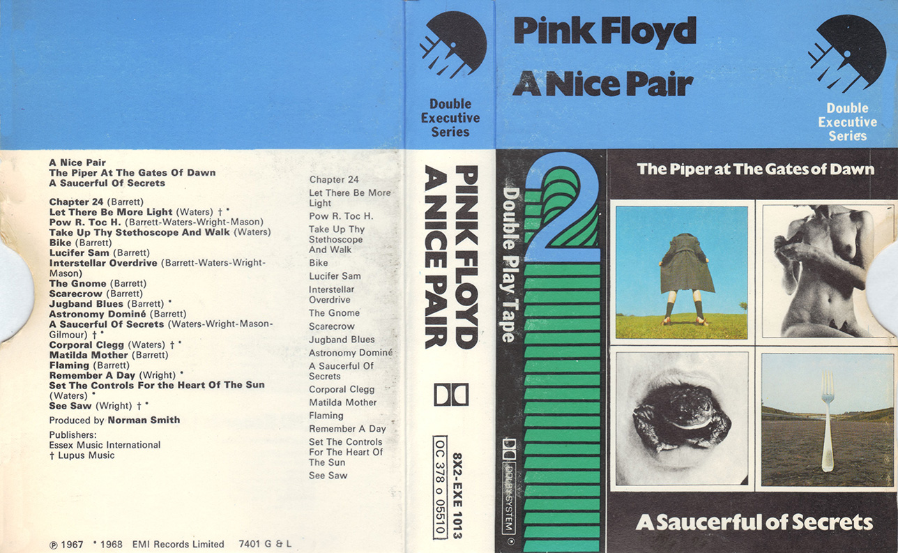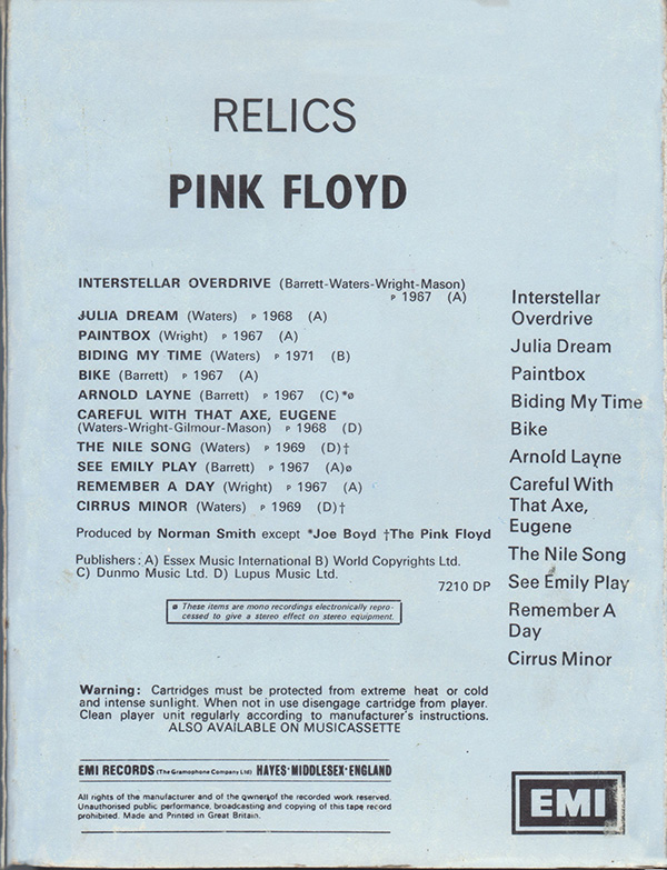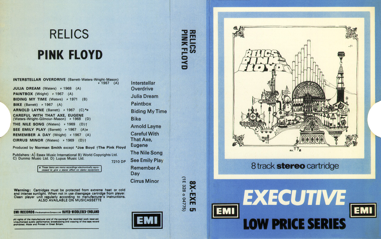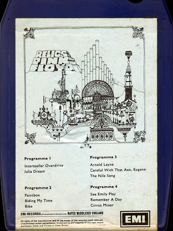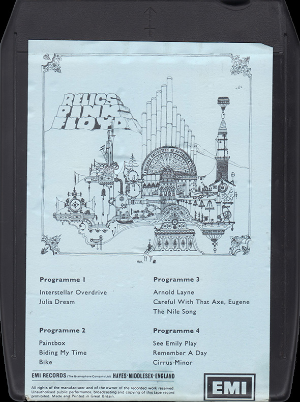 Tape: [front] [back] [spine] Black cart with light blue label. Nick Mason drawing. Song titles.