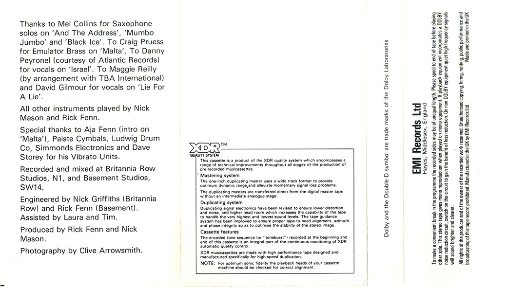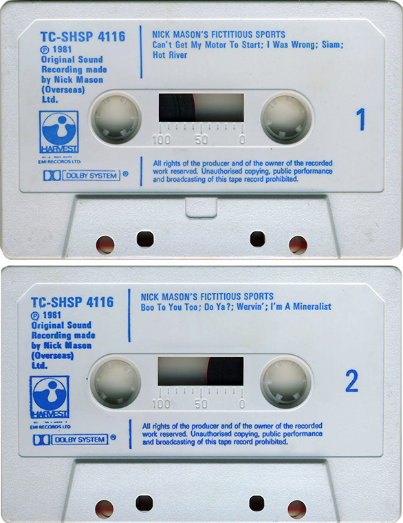 This is a discography of cassette tapes (CTs) that have been released in the United Kingdom by Nick Mason. Any comments, corrections or additions to this discography would be appreciated.