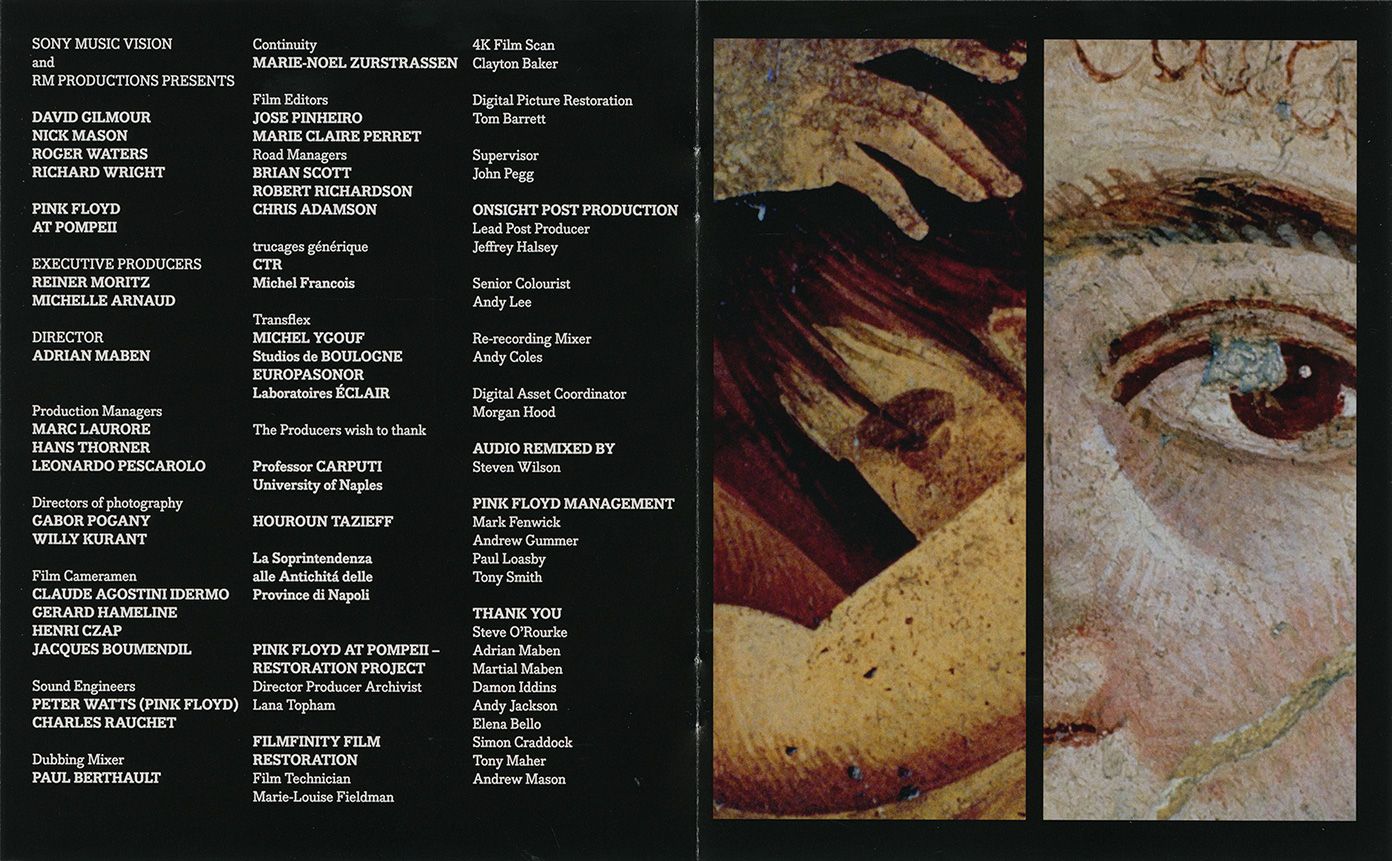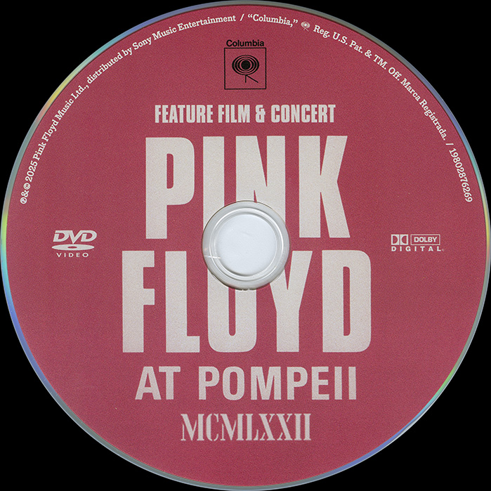 Release Information: U.S. DVD release of Pink Floyd playing live in Pompeii, Italy in 1971. Features a new directors cut, the original concert, a documentary, a map of Pompeii with its history, lyrics, a photo gallery, album graphics, and odds n sods.